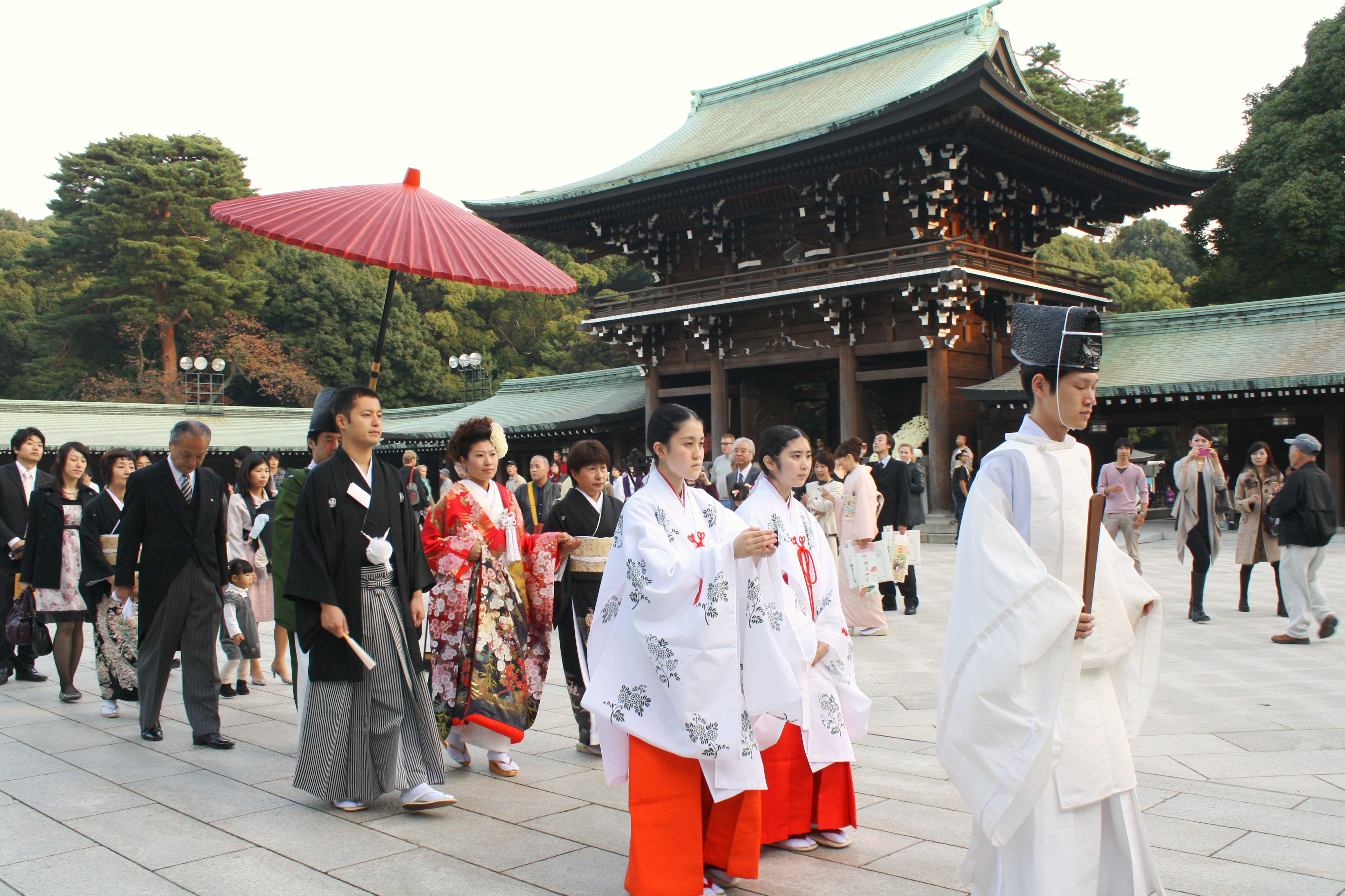 Whilst wandering around in one of the quieter quarters of the shrine, I chanced upon a wedding procession. This Japanese couple looked resplendent in their traditional kimonos. It surprised me a little to see how solemn and quietly the wedding entourage proceeded. To rise to the occasion, I hurriedly stepped out of their way and waited at a corner till they passed me to capture this perfectly timed shot.