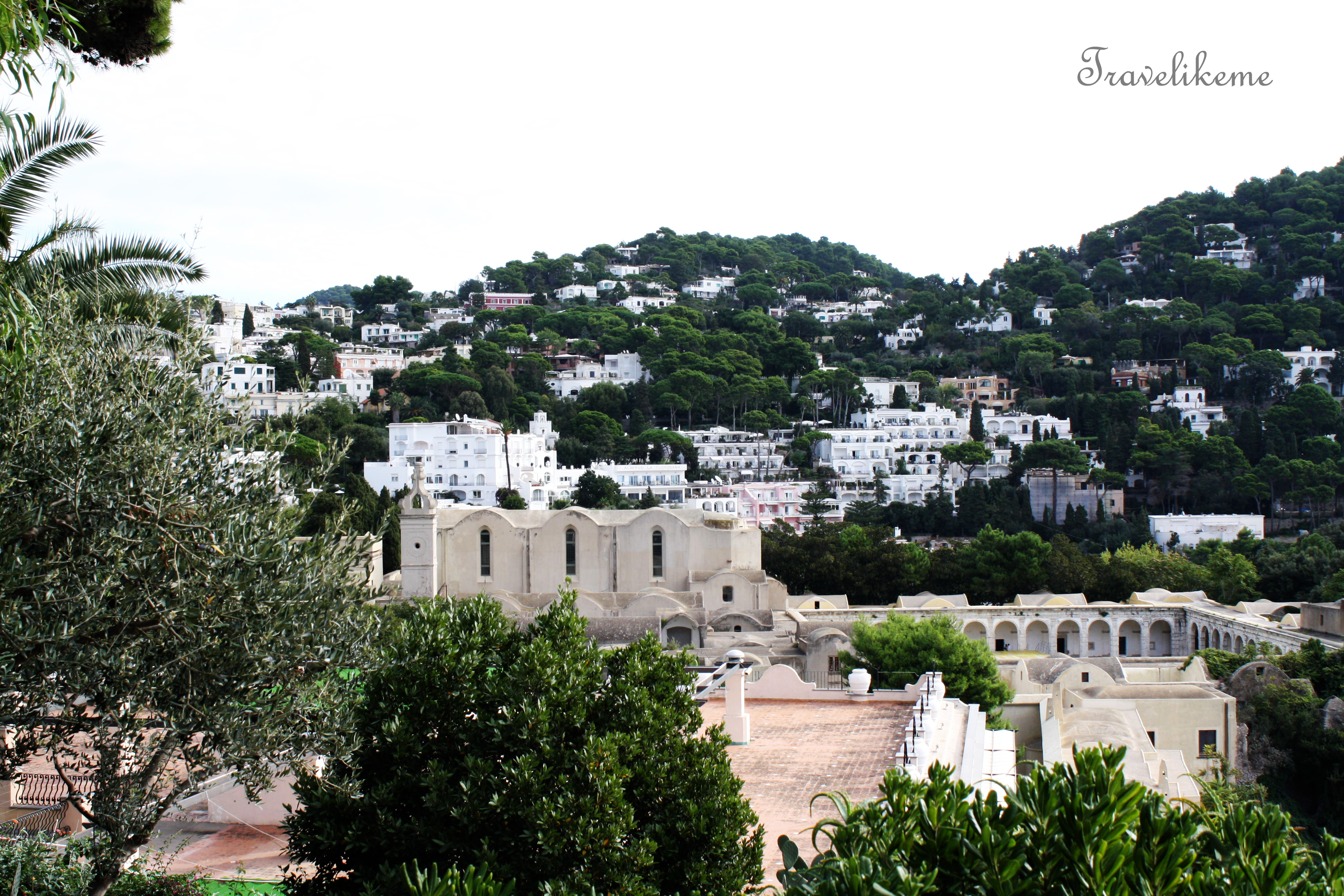 We took a leisurely 20 min stroll from Piazza Umberto I to the Gardens of Augustus and though this was not a spectacular green patch, it is a great spot for a panoramic view of ‘La Faraglioni’. These 3 famous limestone crags or sea stacks are pillar-like rock masses detached from the cliff-lined shore through erosion by the pounding waves and are surrounded by water. The Faraglioni trio : ‘Stella’-109m is still attached to the main island, followed by ‘Mezzo’-82m and ‘Scopolo’-106m which are in close proximity and look like one from this angle.