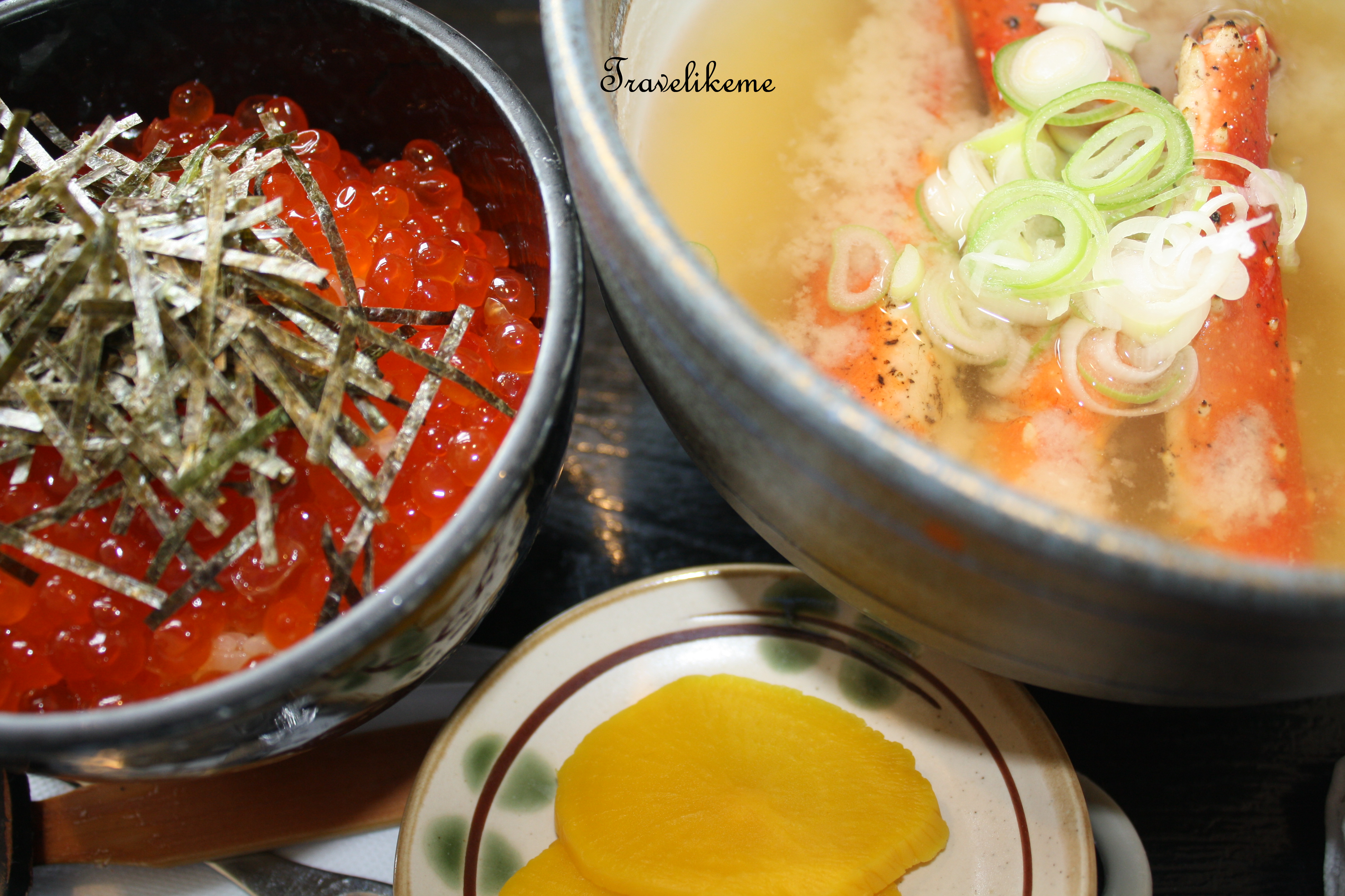 Beer Tasting at ¥500 a pop at the Sapporo Beer Museum is a delight even for a non-guzzler like me. This ‘liquid gold’ Trio consists of (Right to Left) Kaitakushi – a mild beer with a sweet aftertaste which most ladies would like; Sapporo Classic- a medium bodied, pleasant swig & Black Label-a full bodied draft with a lingering hint of hops… my pick!Sweet Premium Uni (Sea Urchin Roe), Salty Ikura (Salmon Roe) & slivers of fresh Salmon Donburi (Rice Bowl) with Miso soup – ¥2,698. Lunch at the Nijo Fish Market in Sapporo, Hokkaido.Bite sized morsels of meat & vegetables cooked slowly on a griddle over charcoal fire – A ‘Genghis Khan’ experience in Sapporo, Hokkaido.A ‘Genghis Khan’ BBQ is a must do for all hearty meat lovers. This mixed platter consists of beef, mutton & chicken which is cooked slowly on gridirons DIY. Great meal to enjoy on a cold night like we did at Noboribetsu, Hokkaido.Vegetables like Aubergine, Onions, Cherry tomatoes, Shiitake mushrooms & Asparagus are also popular at Genghis Khan BBQ’s. Enjoying the golden brown & nicely seared meat at a leisurely paced dinner at Isekura Restaurant in Noboribetsu.Tea time at Otaru’s Rokkatei a popular confectionery in Hokkaido. Tried their lovely Shukurimu (Cream Puff) for ¥85 which comes with a free coffee & their bestseller Marusei Butter Sand ¥115, a favourite omiyage (gift/souvenir). This biscuit sandwiches a butter cream & raisins filling laced with rum which was flavourful but a tad too sweet.Rokkaitei’s melt in your mouth Cheese cake is sandwiched by Oreo-like biscuits. Fluffy & nicely balanced taste.Early morning walk at Otaru’s main thoroughfare, Sakaimachi Hondori. No where else in the world is Sampuru (plastic food models) displayed as widely as in Japan. Handmade & custom tailored to match the establishment’s menu, this is a big & thriving business that rakes in billions of Yen annually. Fancy a Sundae, anybody?This has to be the cutest & best Ramen experience in Hokkaido for me. I am not a big fan of Ramen but this ¥850 Shoyu Chashu Ramen (Soy sauce soupbase wheat noodles with succulent sliced pork) was not overly salty like most are & the noodles are ‘al dente’ & wonderfully delicious. This was a surprise find in the Date Jidaimura, Edo period Samurai Theme Park at Noboribetsu, Hokkaido.Trying Himono (Sun-dried Fish) grilled over a Charcoal fire for the first time. This traditional custom was documented in ancient times during the Nara Period around 710-784 where people offered the dried fish to the gods. This Aji (Horse Mackerel) is ‘half-dried’ Hiraki style (pared open & lightly salted before drying but still leaving some moisture in it). The skin was crispy, the flesh firm yet moist & it was unexpectedly very tasty.Kaiseki Breakfast at Oyado Kiyomizu Hotel in Noboribetsu. It is a cuisine art form that balances taste, texture, appearance & colours of the food. Only fresh seasonal ingredients are used & prepared in ways to enhance their flavour and the finished dishes are beautifully presented on plates for an aesthetic & appetizing meal.Yummy Wagyu Beef Salad Set at a tiny “Mom & Pop’s” restaurant near Hotel Grand Toya, Lake Toya for about ¥1,200.This succulent Wagyu Burger was piping hot & delicious. Seasoned the Japanese way, the lettuce, tomatoes & onions enhanced the culinary experience by leaps & bounds ¥650An early morning visit to Hakodate Asaichi (Morning Market) which was 10mins walk from my hotel. There was a wide array of fresh fruit & vegetables, preserved foodstuff & plenty of seafood; saw this interesting stall where you pay ¥900 to fish for your own squid which would be prepared as sashimi on the spot. It can’t get any fresher than this!The Yubari King melon is grown in the area of Yubari, Hokkaido. This cantaloupe is very fragrant, refreshing & sweet; it is an expensive & yet popular gift Japanese like to give others on special occasions. Cutting the ripe orangey flesh into bite-sized portions with a metal spoon yielded lots of juice; it was trickling down my hand.Awabi Donburi set (Abalone rice bowl) going for ¥2000 which comes with a mouth-watering Kani no supu (Crab Miso soup), Takuan (Daikon radish pickle) & Ika Tsukemono (Pickled Squid) & a dollop of Gari (finely grated Ginger). Scrumptious Brunch at Hakodate’s Asaichi – Morning Market.Yes… Black Cheese! Furano Cheese Factory produces flavoured cheeses including Lavender, Melon, Original Camembert & this Squid Ink variety to suit different palates. 100g boxes for Original Camembert going for ¥875.This light & fluffy cheesecake is worth the calories consumed. Tiny portion good for tasting only. You could easily pop the whole piece in & let it melt in your mouth! Furano Cheese Factory retails this at ¥115The city of Furano started producing wine in 1972 & has since come a long ways. Every September there is a huge wine festival held here & it draws crowds where wine sampling is enjoyed with the local cuisines. Ciel White wine is semi-dry & refreshing like it claims here. It would be perfect when properly chilled in an ice bucket & paired with Hokkaido’s fresh seafood. A 500ml bottle goes for about ¥1200.Ikura Donburi (Salmon Rice Bowl), Matsubagani Supu (Snow Crab Miso Soup) & Takuan (Pickled Radish). The soup was very flavourful, made sweet by the Crab & beautiful Scallion). Lunch Break at Sunayu Beach along the shores of Lake Kussharo ¥2,300Kegani (Hairy Crab) is popular in Hokkaido & it being in season was a good enough reason to sample it. We picked the largest cooked ones going for ¥5,400 a piece against the live ones which was a lot pricier & bargained it down to ¥5,200. Kushiro lies on the eastern part of Hokkaido facing the Pacific Ocean & boasts one of the largest seafood catches in the nation. Perhaps fresher & definitely cheaper than in Tokyo, Osaka & even Sapporo!Clockwise: Otoro (Tuna belly), Hotate (Scallop), Kanpachi (Greater Amberjack), Hamachi (Yellowtail/Japanese