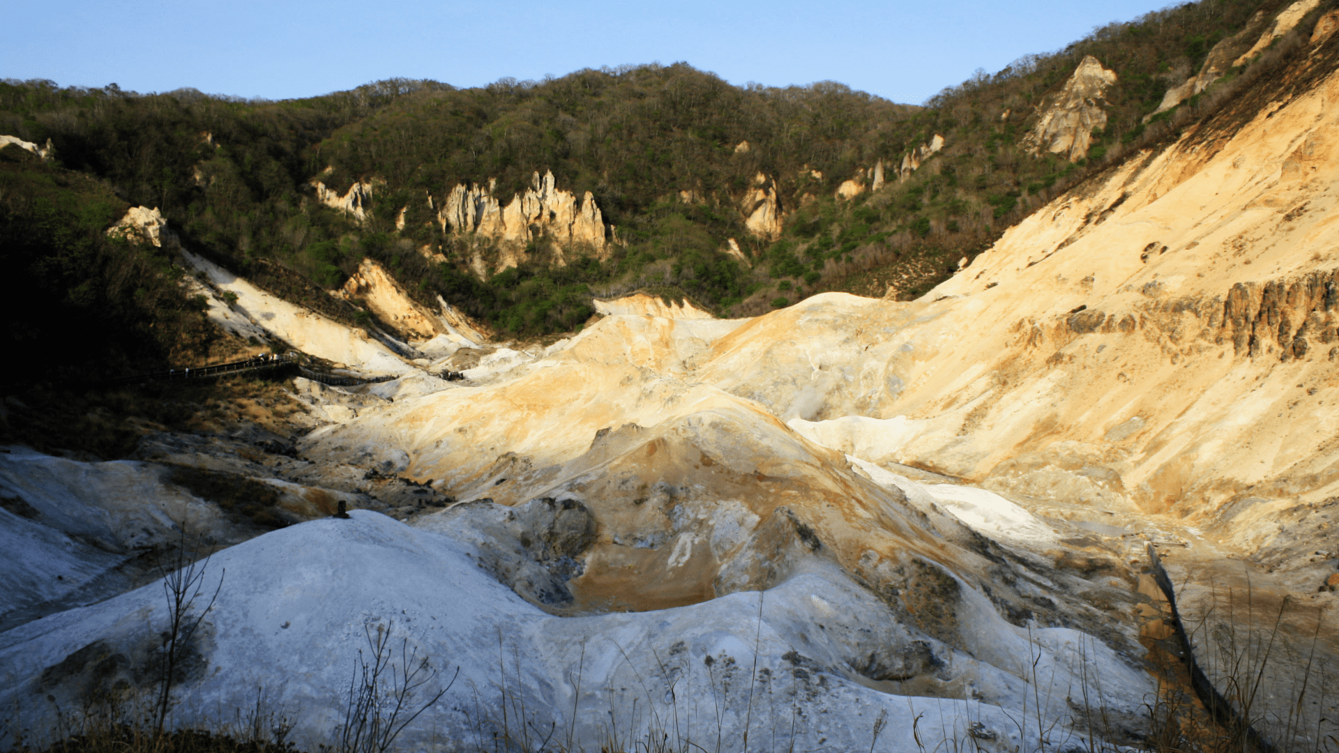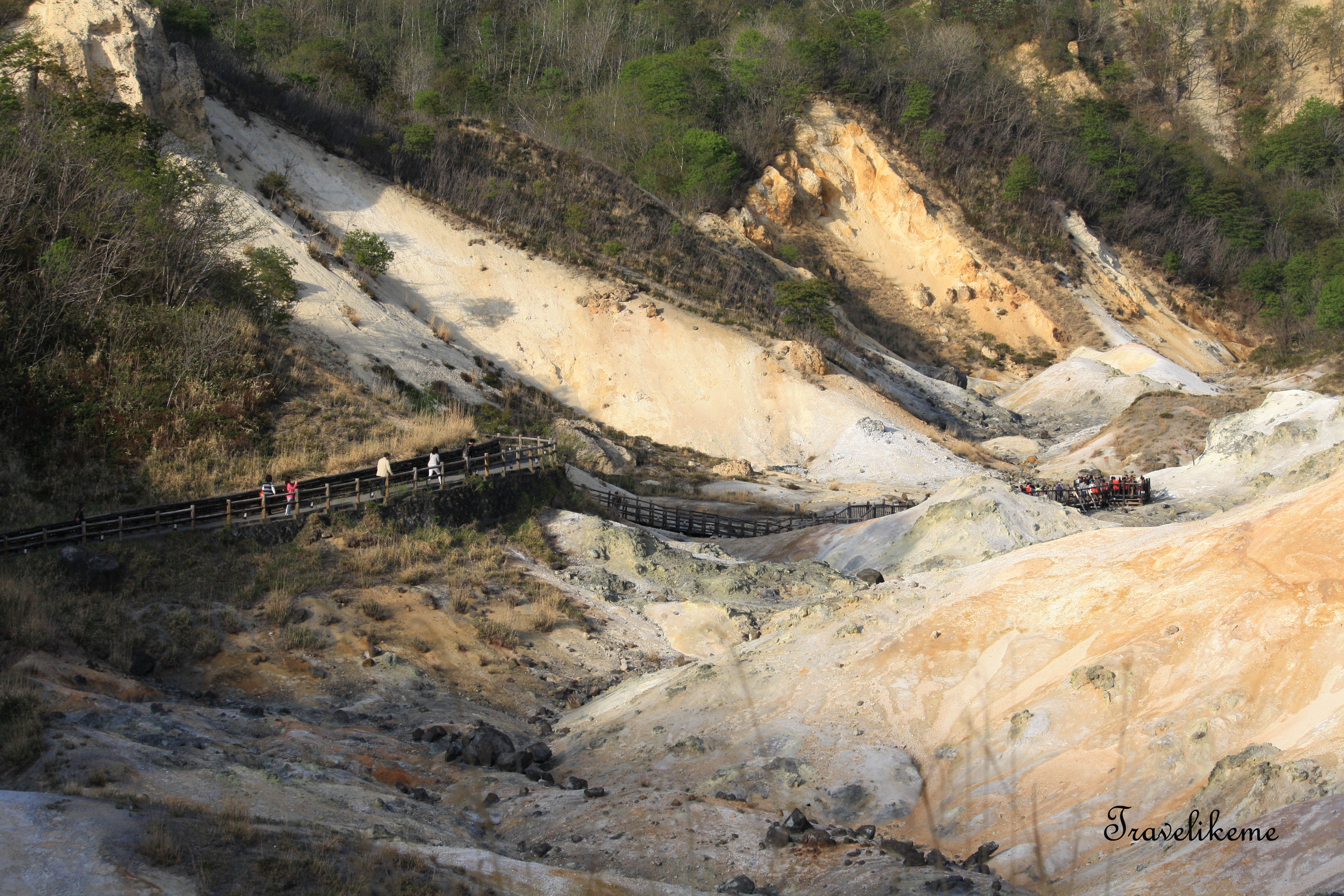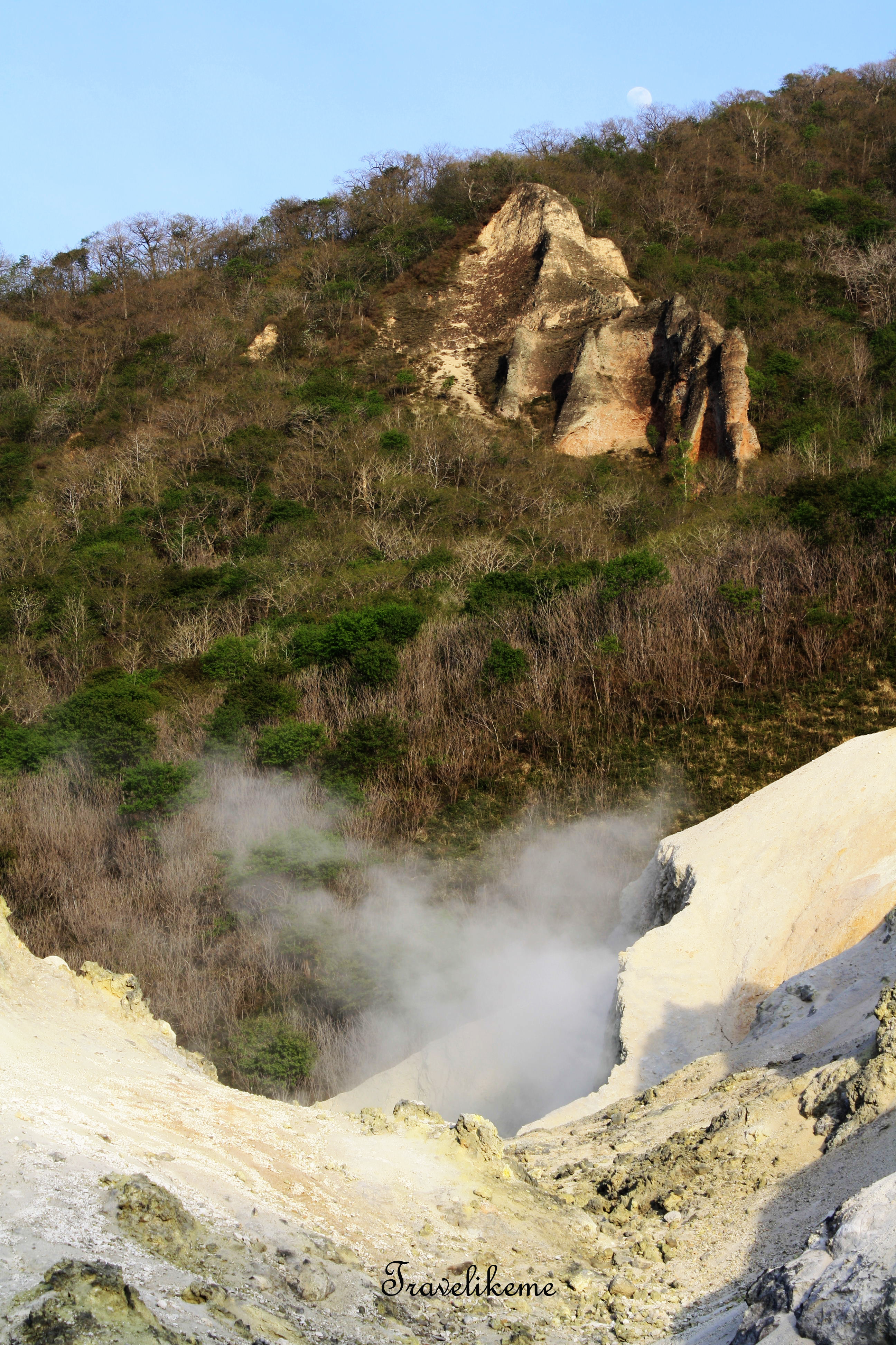 Jigokudani and Noboribetsu Spa are sites where active thermal activity is still evident and fumaroles, hot springs and geysers are found in the area. A fumarole is an opening in the earth’s crust usually in the vicinity of volcanoes, which emits steam and gases such as carbon dioxide, sulphur dioxide, hydrogen chloride and hydrogen sulphide.