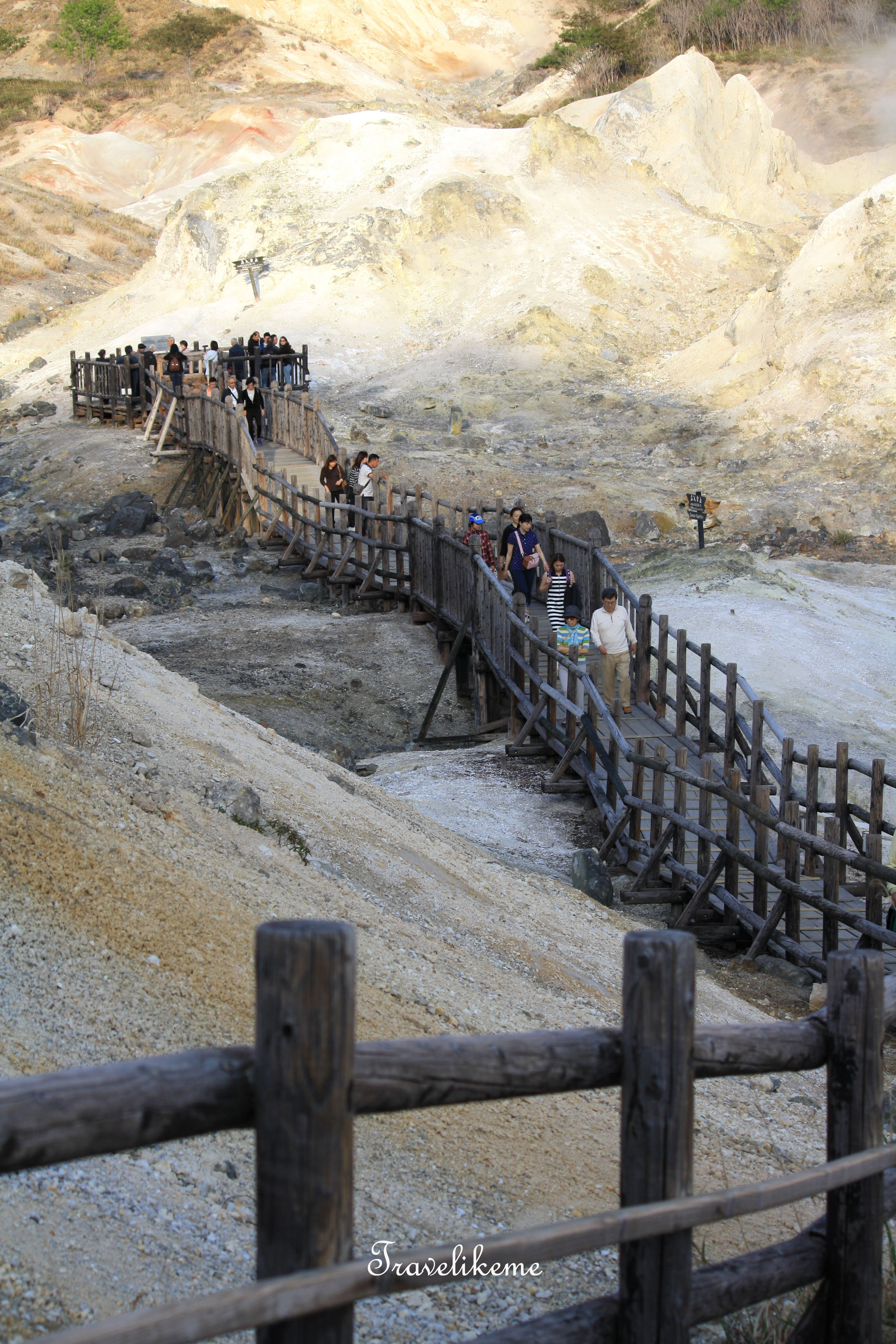 On our approach to Noboribetsu Onsen, we sighted the 18m tall and 18 tons heavy “Welcome Demon Statue” pointing us in the right direction. An unmistakable sulphurous odour pervades the atmosphere here and it gradually seeped into our car cabin creating the ‘stink bomb’ or ‘rotten egg’ effect. If you did not know any better, you would have thought someone did something rude in the car!