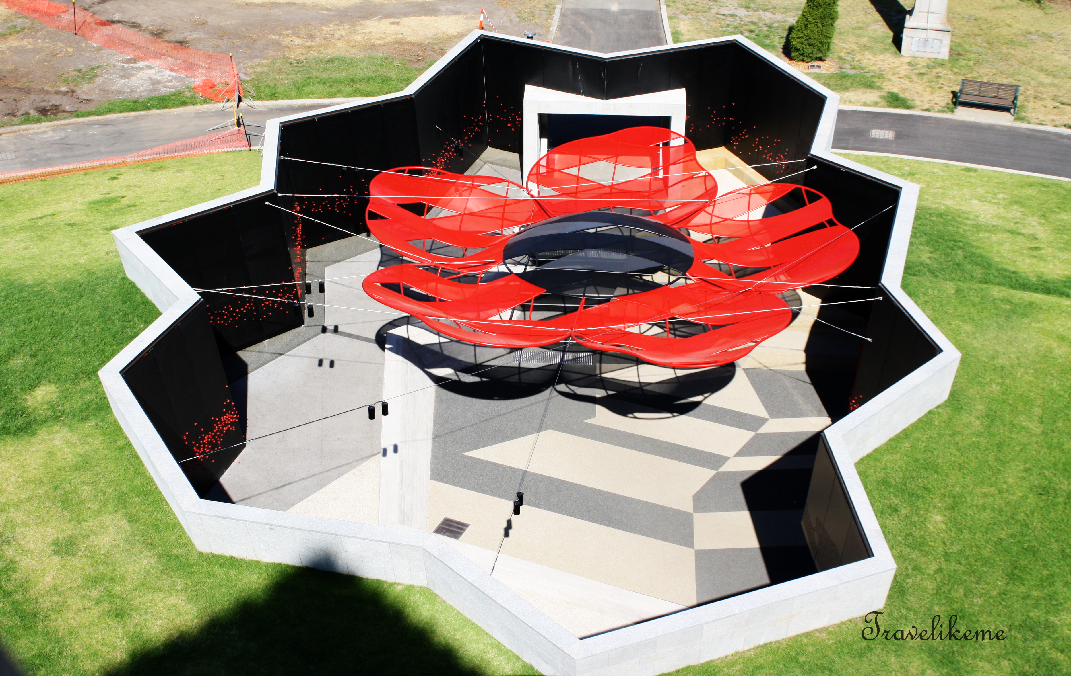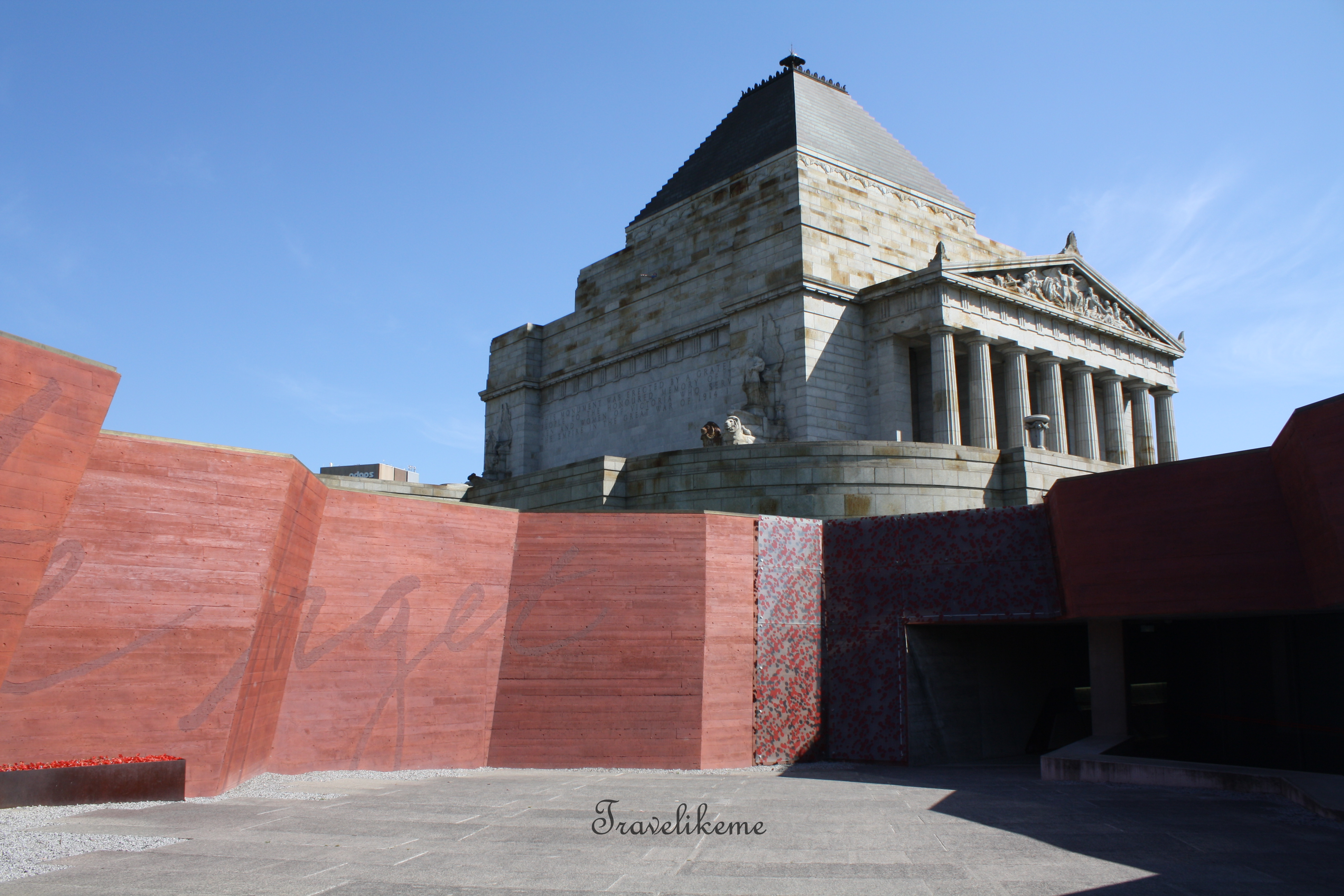 Modern art installation of a “Poppy” at the other Courtyard flanking the Shrine of Remembrance. Red poppies have become a prominent part of Veterans Day which falls on 11th November in Canada, England, Australia & many Commonwealth nations around the world. It was a result of Canadian military physician John McCrae’s poem “In Flanders Fields” where poppies bloomed across the worst battlefields of Flanders in WWI. The brilliant red colour became a symbol of bloodshed of trench warfare