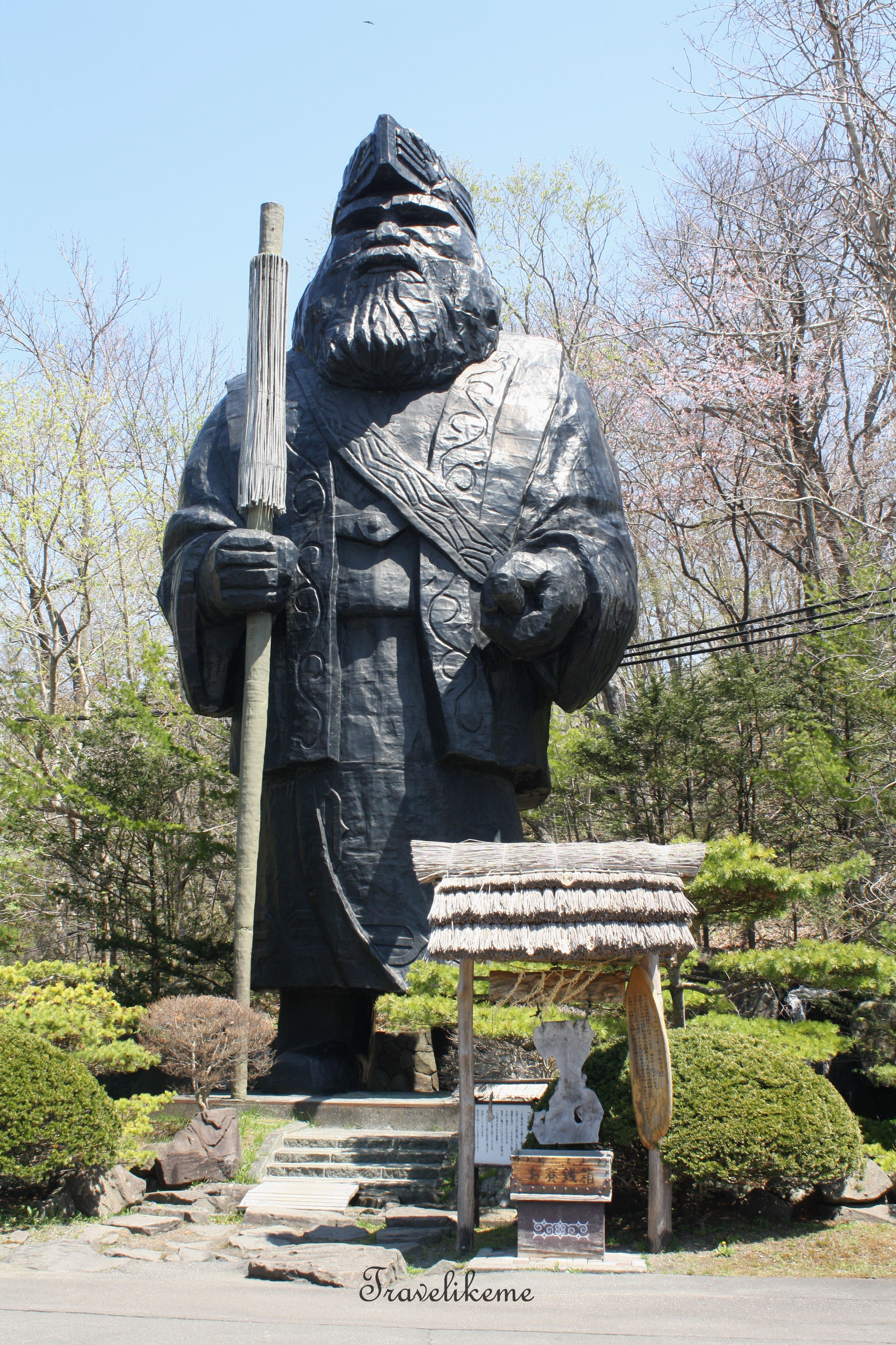 A 16m high Statue of the Chief of the Community, Kotankorokur greets us at the entrance of the Ainu Village situated in Shiraoi district of Hokkaido, Japan’s most northerly frontier.