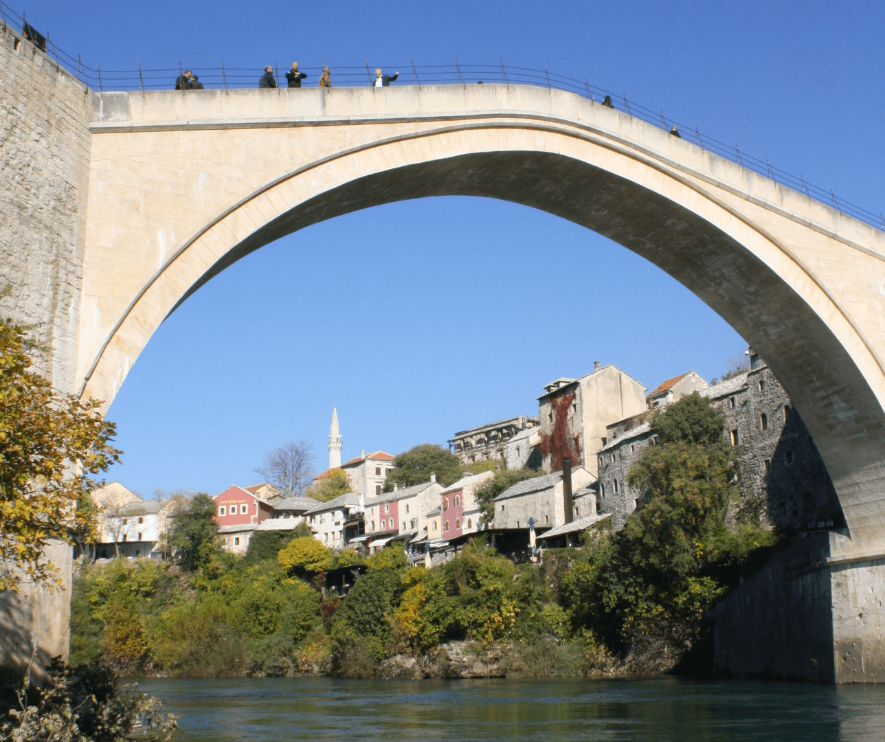 Mostar is a city in the administrative centre of Herzegovina-Neretva Canton of the Federation of Bosnia & Herzegovina. It has about 105,000 inhabitants as per the 2013 census taken. This is the 5th largest city in the country & it was named after the bridge-keepers “Mostari” who during medieval times guarded the Stari Most “Old Bridge”.Mostar which is situated in the deep valley of the Neretva River, developed during the 15th & 16th centuries as an Ottoman frontier town & during the Austro-Hungarian period in the 19th & 20th centuries. Mostar is known for its old Turkish houses & the Stari Most. Browsing along the cobbled-street Kujundziluk Bazaar where colourful souvenir shops & handmade crafts beckon.The Old City of Mostar & the Stari Most (Old Bridge) have been designated a UNESCO World Heritage Site since 2005 & this bridge built by the Ottomans in the 16th century is an exemplary piece of Islamic architecture in the Balkans.Climbing up Stari Most which is an arched stone bridge commissioned by Suleiman the Magnificent in 1557. It was tasked to Mimar Hayruddin (a student of the Ottoman architect Mimar Sinan) who took 9 years to complete it.The Stari Most superseded the previous wooden bridge that used to span Neretva River & upon completion in 1566 quickly became a wonder for being the widest man-made arch at that time. The arch of the bridge is made of a local stone called tenelija & its shape was formed as a result of the irregularities of the stones that lined the inner section of the arch.The picturesque Old Bazaar Kujundžiluk on the west bank of Neretva River was named after the goldsmiths who traditionally crafted & sold their wares on this street. Today you can still find authentic paintings & copper or bronze carvings of the Stari Most for keepsakes.Mostar was first mentioned in a document dating from 1474 & it was on the trade route between the Adriatic & the mineral rich regions of central Bosnia; thus the settlement began to spread to the east bank of the river.Koski Mehmed Pašina Džamija- This mosque built between 1618-1619 represents another fine example of Ottoman architecture in Bosnia & Herzegovina & is the most monumental mosque in Mostar. This one space-plan with a dome was designed in the main architecture office in Istanbul & was built from precisely tanned stone blocks. It is significantly located on the cliffs by River Neretva in the centre of the city.Looking from Stari Most at the east bank of the Neretva River which is today lined with restaurants. Having survived for 427 years the Stari Most was sadly destroyed during the Bosnian War in Bosnia & Herzegovina on 9 Nov 1993 when more than 60 shells were fired at it. That was deemed a deliberate attempt by the Croats to destroy cultural property & to wipe out memories of a shared cultural heritage & peaceful co-existence.The view from the highest point on Stari Most is pretty to say the least. I spy a diving platform that would be useful during summer when the water level in the river rises in tandem with the temperature. There is also a modern bridge the Lučki Most nearby that carries both pedestrians & vehicular traffic.Human settlements along the River Neretva between Hum Hill & the Velež Mountain have existed since prehistory & discoveries of fortified enceintes, cemeteries & evidence of Roman occupation have been found buried beneath the present town. Bosnia & Herzegovina of the western Balkans is mostly mountainous & it encompasses the central Dinaric Alps.Passing under the semi-circular Tara Tower on the east bank of Stari Most which served as an architectural buttress, watchtower & ammunition storage during the Ottoman period. On the west bank, Helebija Tower was once a prison on the lower floor & a small barrack on the upper floor. Have a peek through the archway & see part of the Karst mountain range of the Dinaric Alps which extends for 645km from Italy in the northwest to Slovenia, Croatia, Bosnia & Herzegovina, Serbia, Montenegro & Albania in the southeast.The cobblestone pathway acoss the Old Town of Mostar & the Stari Most is called kaldrma. During reconstruction of the bridge, two distinct mortars were used. A dark red & a pink mortar which helped with preventing water penetration into the bridge & to make walking on them easier for the merchants & their animals.The dark red mortar is located directly above the stone slabs recesses & above the stone elements of the arch. The cobblestones are submerged in pink mortar that fills the joints & gaps between the stone blocks thus setting the pavement & insulating it from water seepage.Coming close to the waters’ edge – Neretva River is the largest river of the eastern part of the Adriatic Basin. There are 4 Hydroelectricity power plants & large dams with water levels higher than 15m providing flood protection, power & water storage. This is one of the most valuable natural & freshwater resource of Bosnia & Herzegovina.The Stari Most is iconic of Bosnia & Herzegovina’s & instead of foundations, it has abutments of limestone that link the wing walls along the waterside cliffs. It spans 30m, is 4m wide & rises 24m above the emerald-green waters of the Neretva River.