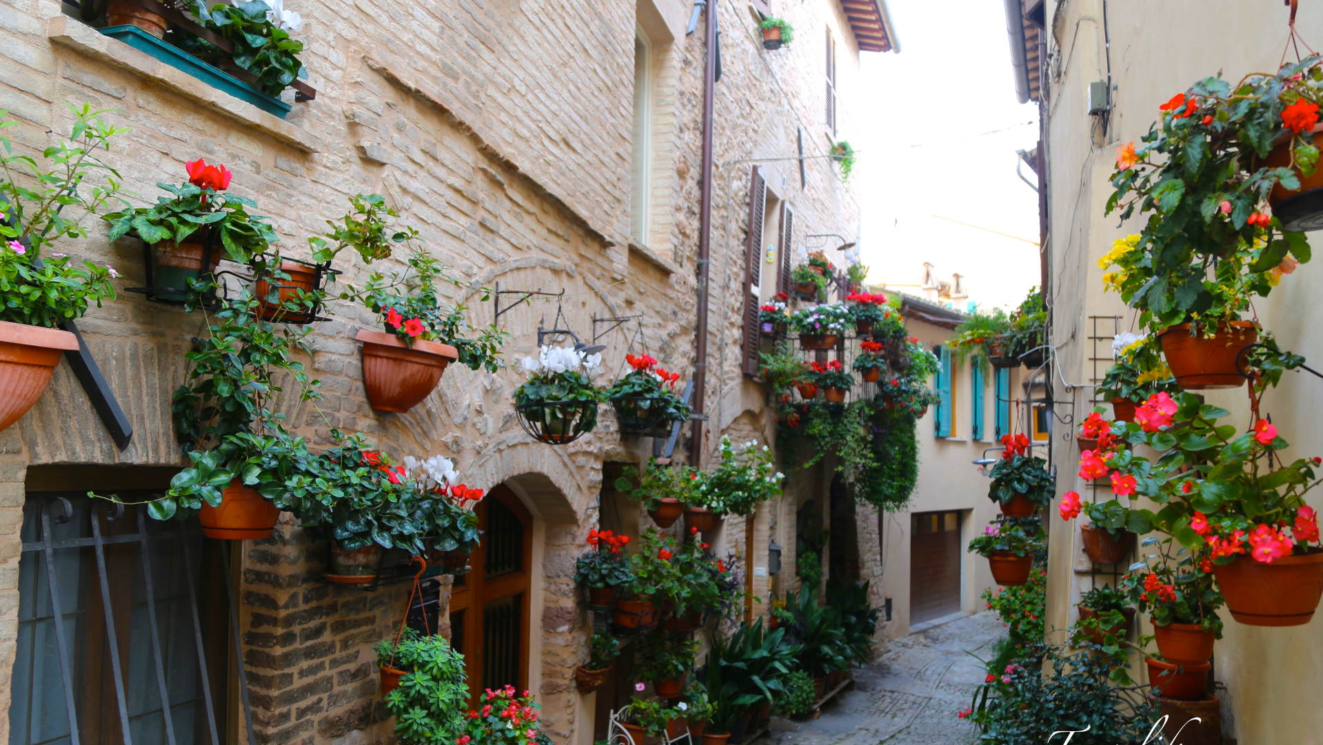From May to August the town of Spello comes to life with floral decorations adorning her alleyways, homes, porticoes, staircases, corners, railings, window sills, terraces & balconies. Visitors can enjoy not only a visual feast but also the scent of the flowers that perfume the air & that sets it apart from other equally interesting Medieval towns.