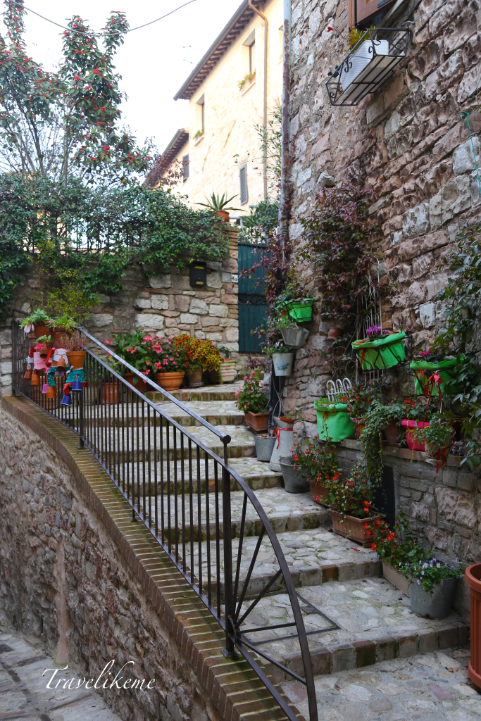An amble around Spello is really fun, as there are unexpected tiny nooks & corners where pretty architecture dressed with potted plants & flowers await to be discovered.