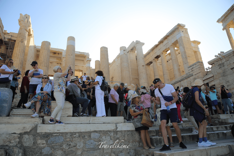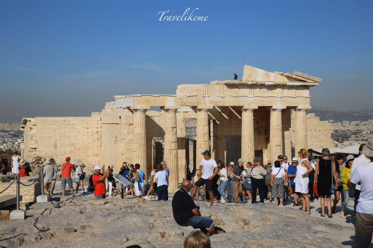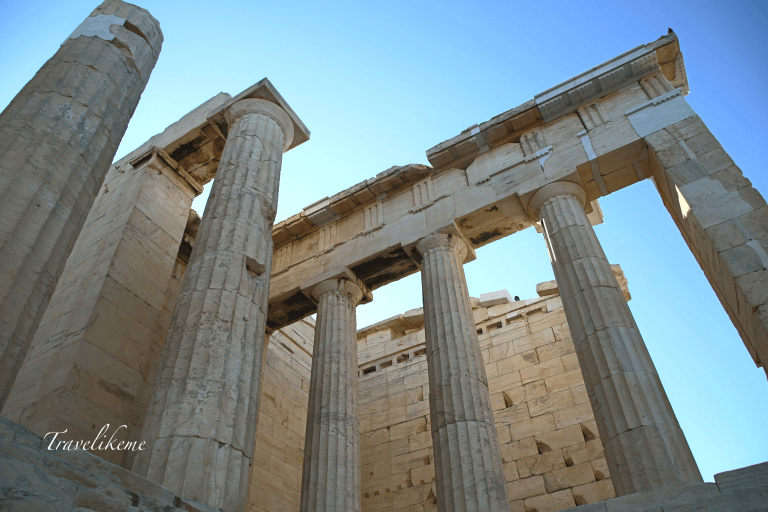 This is the monumental Western facade & gateway to the Acropolis which is called the Propylaea. This was one of the public works commissioned by the Athenian leader Pericles, to rebuild the Acropolis after the end of the Persian Wars (499-449 BC). Construction began in 437 BC but was terminated in 432 BC unfinished with the outbreak of the Peloponnesian War between Athens & Sparta in 431 BC.