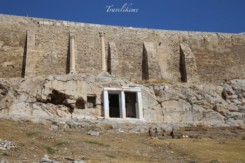 Right above the Theatre of Dionysus, is the Choragic Monument of Thrasyllos (320 -270 BC) which was sponsored by a rich Athenian Thrasyllos to hold the Tripod, a victory trophy of the drama contests which took place in the theatre.