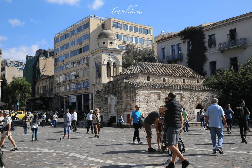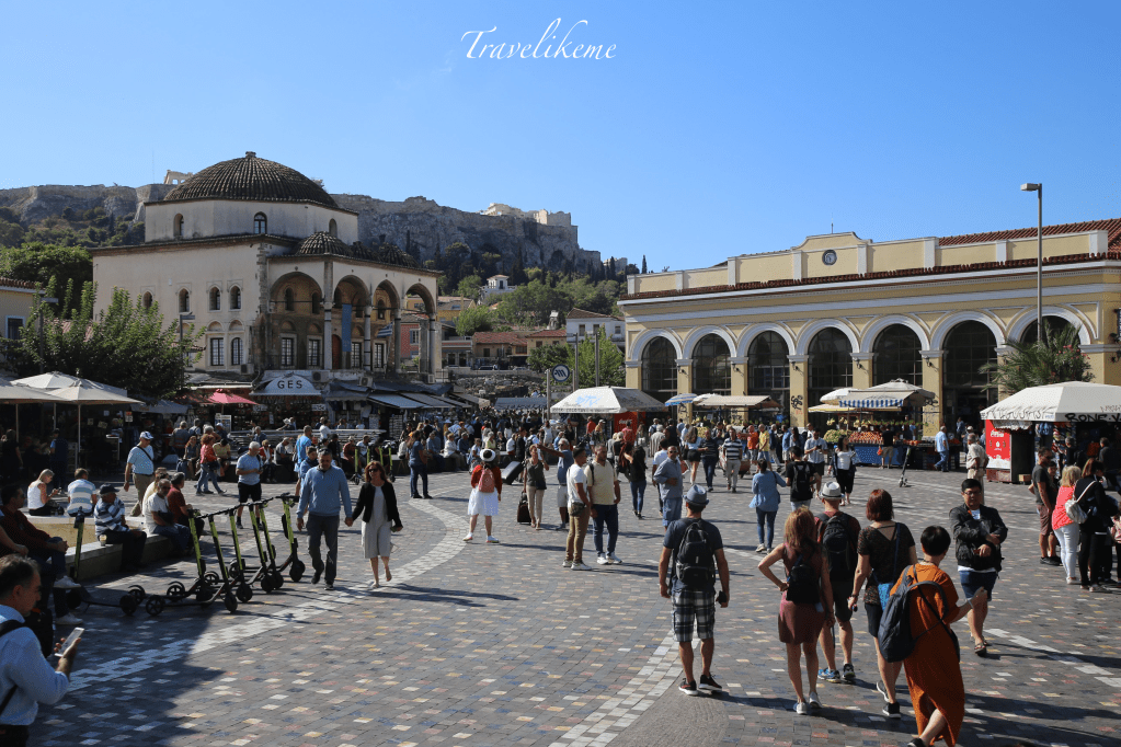 Monastiraki Square sits at the heart of old Athens & it is a bustling place where tourists & locals come shopping & dining at the many restaurants & tavernas that are chock a block.