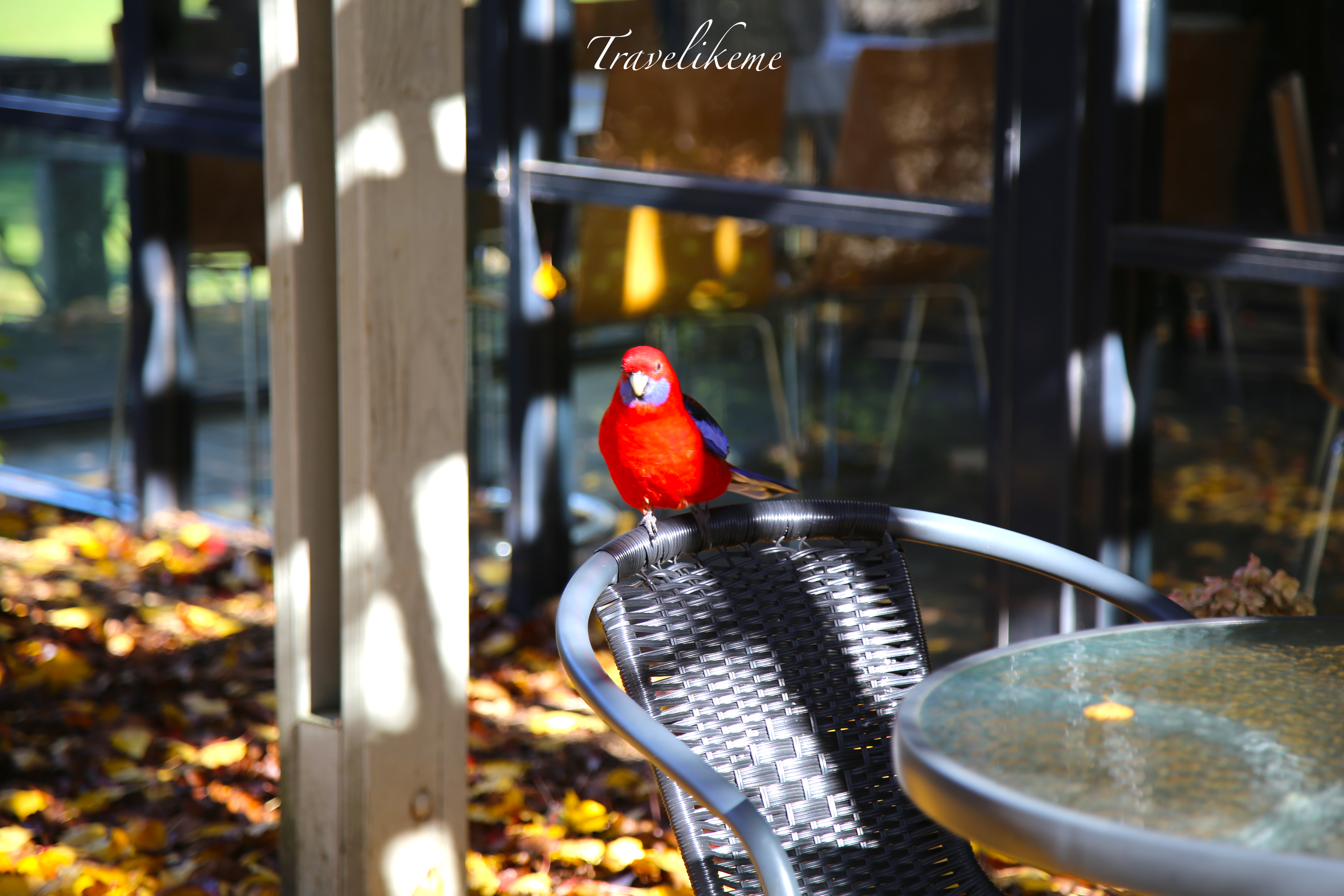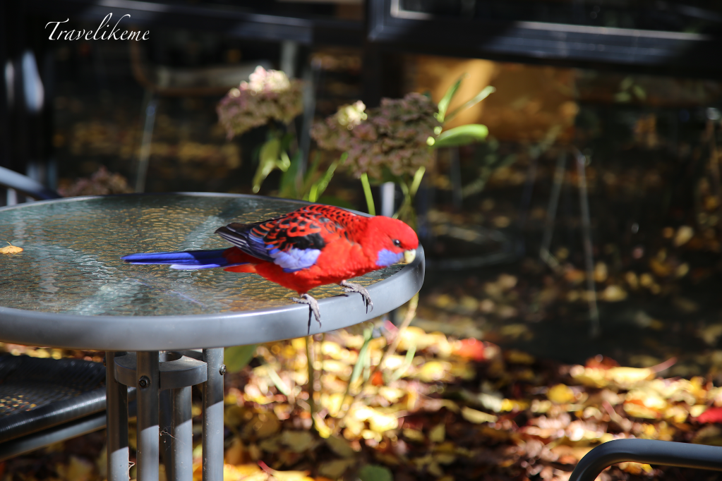 There is a cafe at the Hanging Rock Discovery Centre where you can have a bite and there is a A$10.00 parking fee to enter the reserve. We were visited by a flock of Crimson Rosella that are native to eastern and south eastern Australia. These pretty parrots are medium sized measuring about 36cm long, much of which is tail.