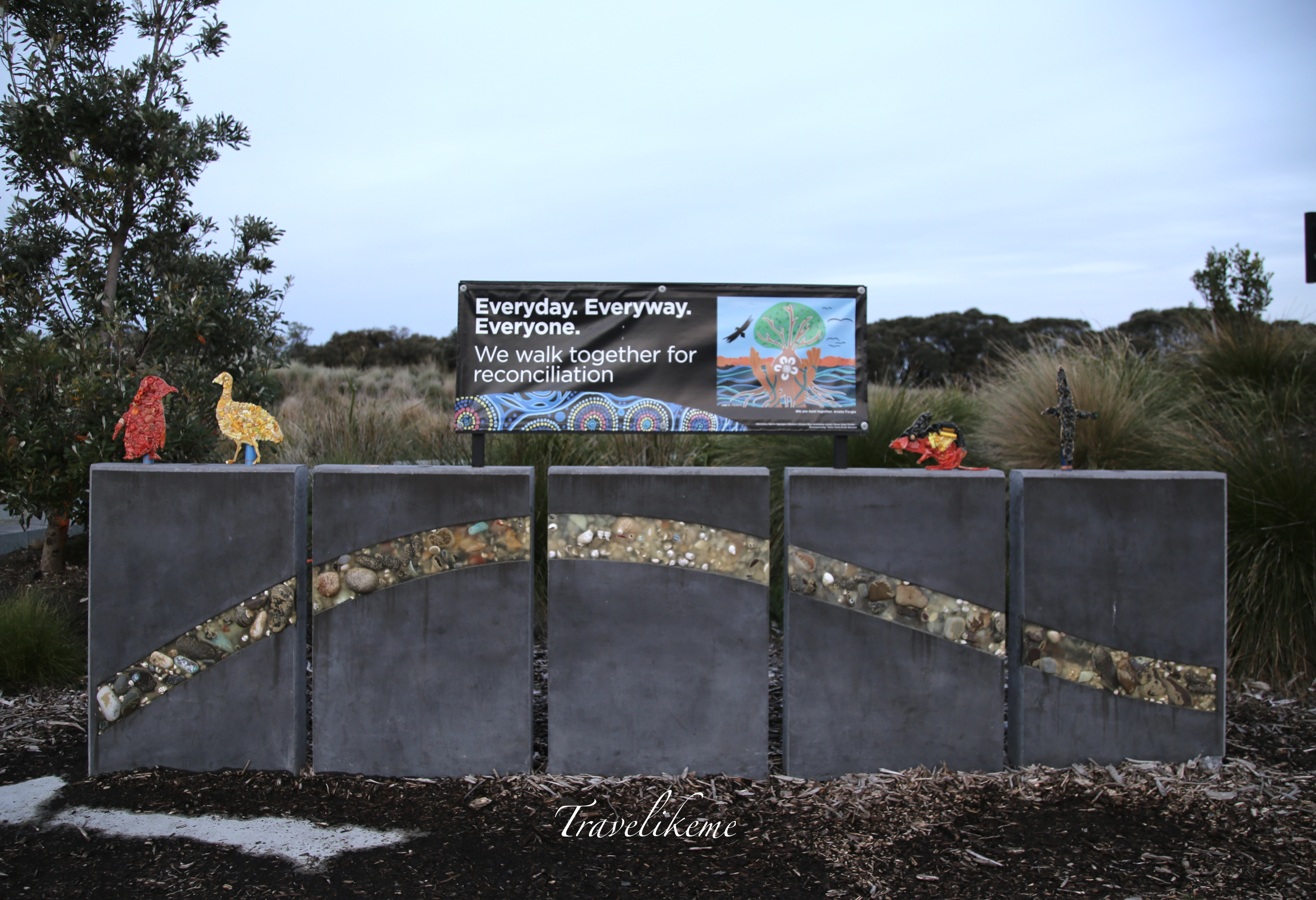 Penguin Parade is located 90mins drive away from Melbourne City, Victoria & about 20mins from the Bridge that links the mainland to Phillip Island. This sculpture “Millowl” by Adam Magennis is a cultural marker on Bunurong Country and the cultural ecology of Millowl (Phillip Island). The shell and rock rebate has 10 markers showing human interaction with the environment and the bits and pieces left of the country. A stark reminder to be careful of our footprints and the impact it has on the country’s ecology.There are ample parking spaces near the Visitor Centre which opens a couple of hours before sunset when the penguins return around 4pm in winter and 6pm during the summer. Penguin Parade has an impressive and wide range of facilities to match the needs of people of all abilities and sensory needs. Wide pathways for wheelchairs and prams, ramp access through the Visitor Centre along the Boardwalks and Sensory Bags equipped with noise-cancelling headphones, fidget tools and verbal cue cards that can be checked out for free by leaving an ID. The beautiful Visitor Centre at Penguin Parade has an Exhibition Area and dining is available at the Shearwater Restaurant or you can get a drink from the Boardwalk Coffee Cart which both opens from 4pm till closing time.The Shearwater RestaurantThe Brushtail Possum is the most widespread in Australia. They typically live in wooded areas and in the forest but have also adapted to urban areas very well. My cousin used to have this annoying possum rummaging on his rooftop causing a ruckus during the night and it was hard getting it to go away. The red furred possums are often mistaken for foxes at Phillip Island but they are really harmless to the penguins.This cute little creature is the Eastern Barred Bandicoot, a nocturnal marsupial that was considered extinct in the wild of mainland Australia. A fox free environment has allowed for this vulnerable species to be translocate to Churchill Island, Summerland Peninsula & now French Island.The eradication of Red Foxes on Phillip Island is a major conservation success story for the Nature Parks and local community as it allows ground nesting and other smaller nocturnal animals to thrive.The start of the Boardwalk that leads up to Summerland Beach where we have tiered seating at the grandstands for general viewing of the returning fairy penguins.A pair of Purple Swamphens ambling around; these wetland birds have a resplendent purple-blue neck, breast and belly. Their bright red and oversized bill with a frontal shield stands out, as do their beady red eyes. A cute characteristic of the swamphen when they walk is that they flick their tails up and down, revealing their white under tail. Although they look bulky, they take flight easily and are also proficient swimmers though they prefer to wander on the edges of the water among reeds and on floating vegetation.These bulky Cape Barren Geese can weigh anything between 3 to 7kg. Their uniformly grey plumage with round spots is unique. The tail and flight feathers are black and the legs are pink with black feet. This bird is one of the rarest of the world’s geese and they feed by grazing thus they rarely swim. Another interesting characteristic of the Cape Barren Goose is their ability to drink salt or brackish water which allows them to remain on offshore islands all year round.I saw quite a few Swamp Wallabies driving towards Penguin Parade on Phillip Island. These small macropod marsupials usually rest in sheltered areas of thick undergrowth or in forests and woodlands; during the day and are particularly active at dusk when they emerge to graze on grass. Note the wallaby’s light coloured Cheek stripe, with a dark brown to black coloured back and a light yellow to rufous orange tint on the chest. The tip of the super straight tail is often white.This large waterbird breeds mainly in the southeast and southwest regions of Australia. The Black Swan is nomadic and their migration patterns within Australia is erratic and dependent on climatic conditions. Their plumage is mostly black with an outstanding red bill.At the Grandstand along Sumerland Beach which is cold on this wintry evening and as you can see, everyone is nicely wrapped up. I had put on a thick coat plus a windbreaker and sat on a blanket to keep warm from the chilly wind. That is the Lookout Post where the Nature Park ranger would spot the first penguins as they swim to shore and alert the spectators.The Fairy Penguins would also swim together in a large group after dusk and walk along the shore to reach their nesting sites.This is definitely a strategy in dealing with carnivorous marsupials by travelling in a large group simultaneously.See how beautiful this little creatures are! I assure you nature lovers that I had used no flash photography throughout and that the penguins were not subjected to any distress whatsoever. Here comes a little fairy penguin just about to enter his box abode that is specially built to house them away from prying predators. The Australian Fairy Penguin (Eudyptula novaehollandiae) is a species indigenous to Australia and the Otago region of New Zealand. They grow to between 30-33cm tall weighing about 1.5kg. The head and upper parts are blue in colour with slate grey ear coverts fading to white underneath from the chin to the belly. Look at the little webbed pink feet with black soles. One excited Asian adult was heard describing to his young daughter that the penguins were ‘kissing”! Here we see the distinct bright blue feathers and the extended wings which have developed into flippers for swimming. The dark grey-black beak is about 3-4cm long and the irises pale silvery, bluish grey or hazel in colour.The average lifespan of the Fairy Penguin is 6.5 years but they might live up to 25 years in captivity.After all the braying…. and the mating dance is over, the Fairy Penguins go their separate ways!