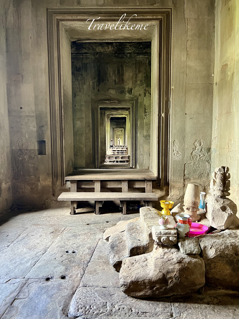 Under the southern tower is the statue of ‘Ta Reach’, an 8 armed statue of the Hindu divinity Vishnu which is the most sacred & divined figure within Angkor Wat. Many come here from different parts of the country to pray for happiness, protection & prosperity & return to pay tributes when their wishes are fulfilled.