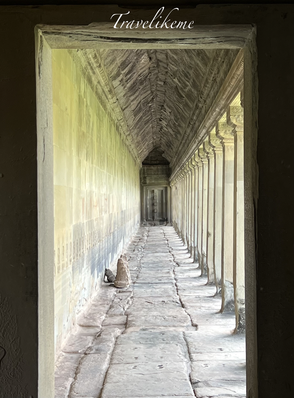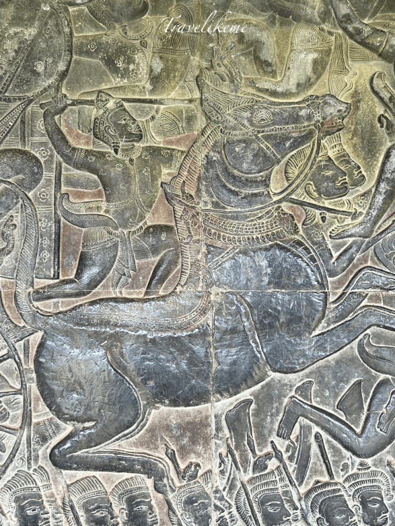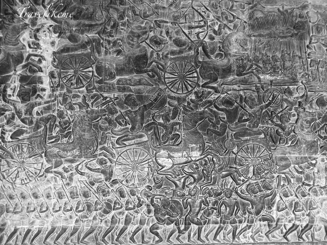 Walking past the corridors along the gallery where bas reliefs tell stories from the Ramayana and the Mahabharata. As the bas reliefs proceed in a counter-clockwise direction it was plausible that Angkor Wat was intended by King Suryavarman II (ruled 1113-c.1150) to be his funerary temple. Brahminic funeral services had rituals taking place in the reverse order.