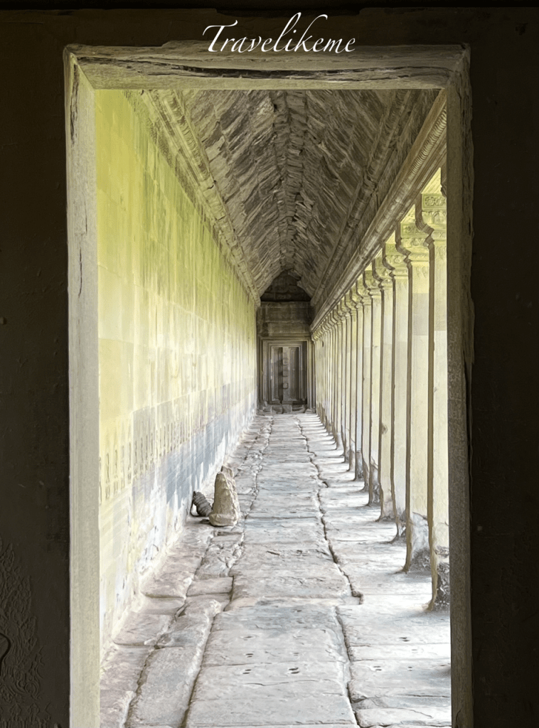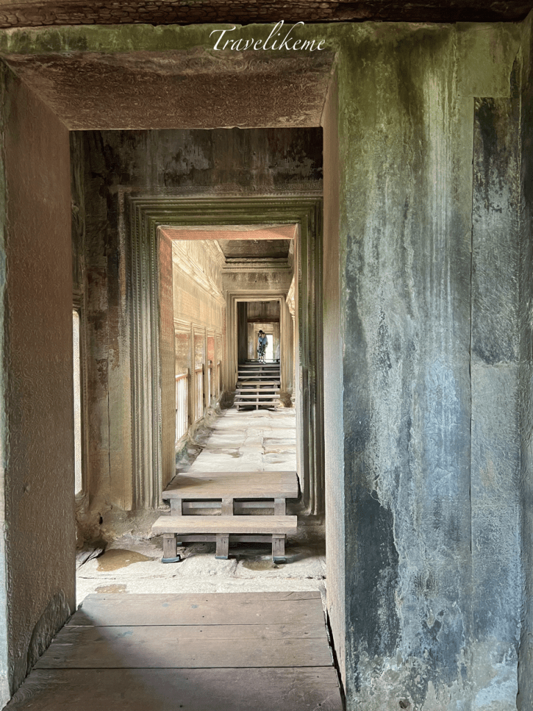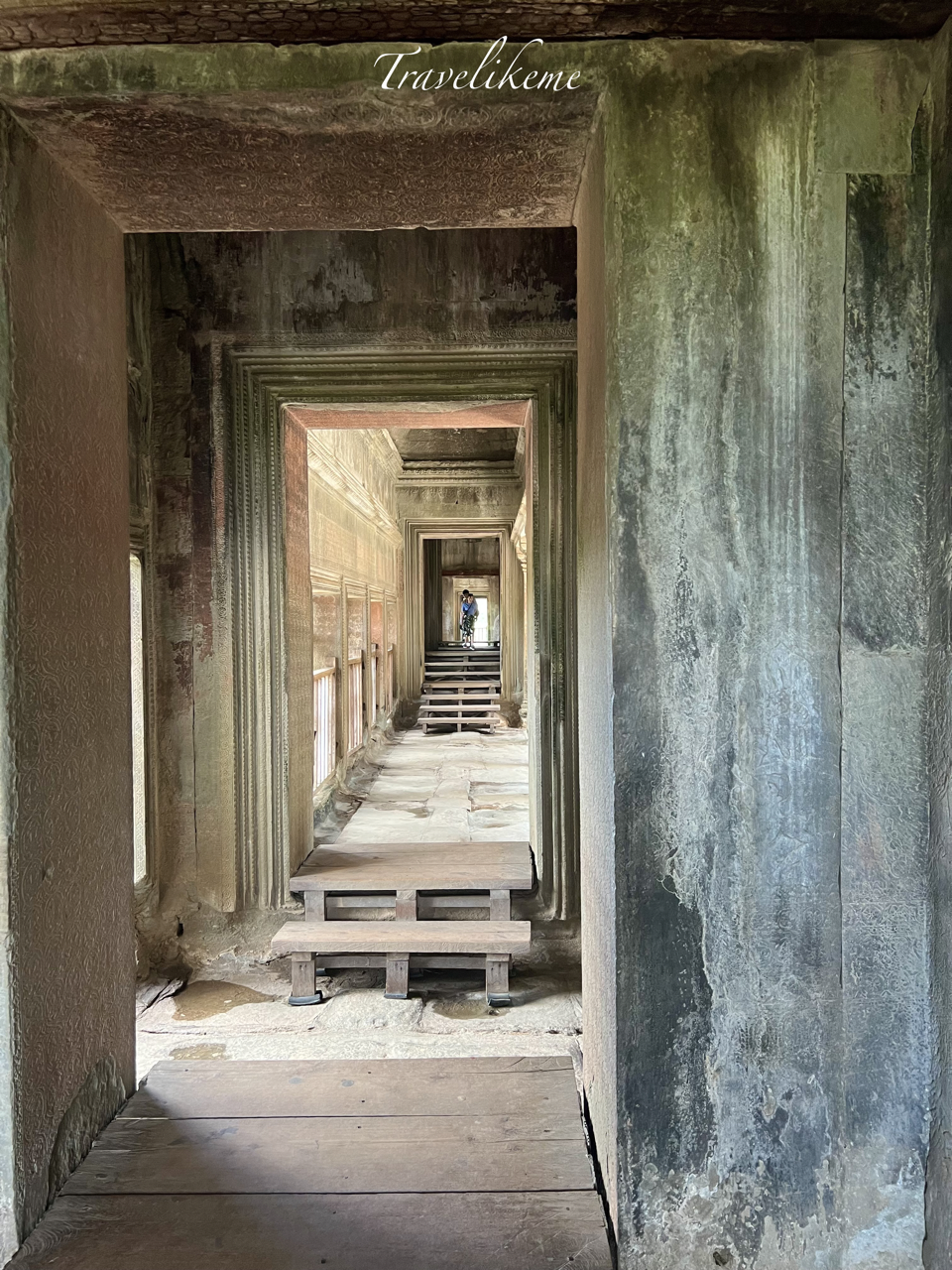 We climbed up the final steep stairs to get to the apex of the temple complex which has 4 towers all connected by corridors like this one with a central square courtyard where the quincunx is completed by the 5th and tallest tower.