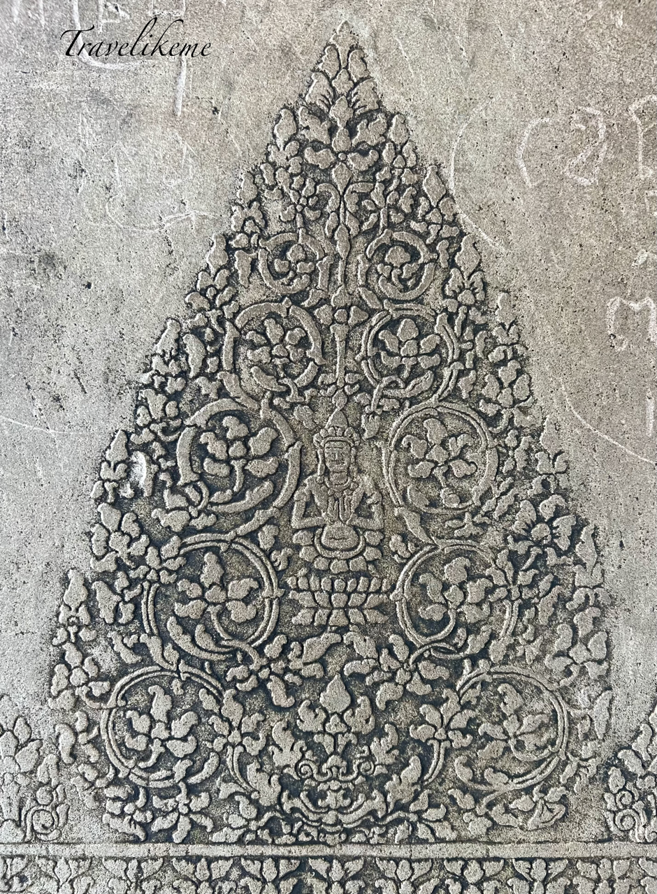 Angkor Wat is orientated to the West and it is admired for the grandeur and harmony of the architecture, its extensive bas-reliefs and for the numerous devatas adorning the walls.