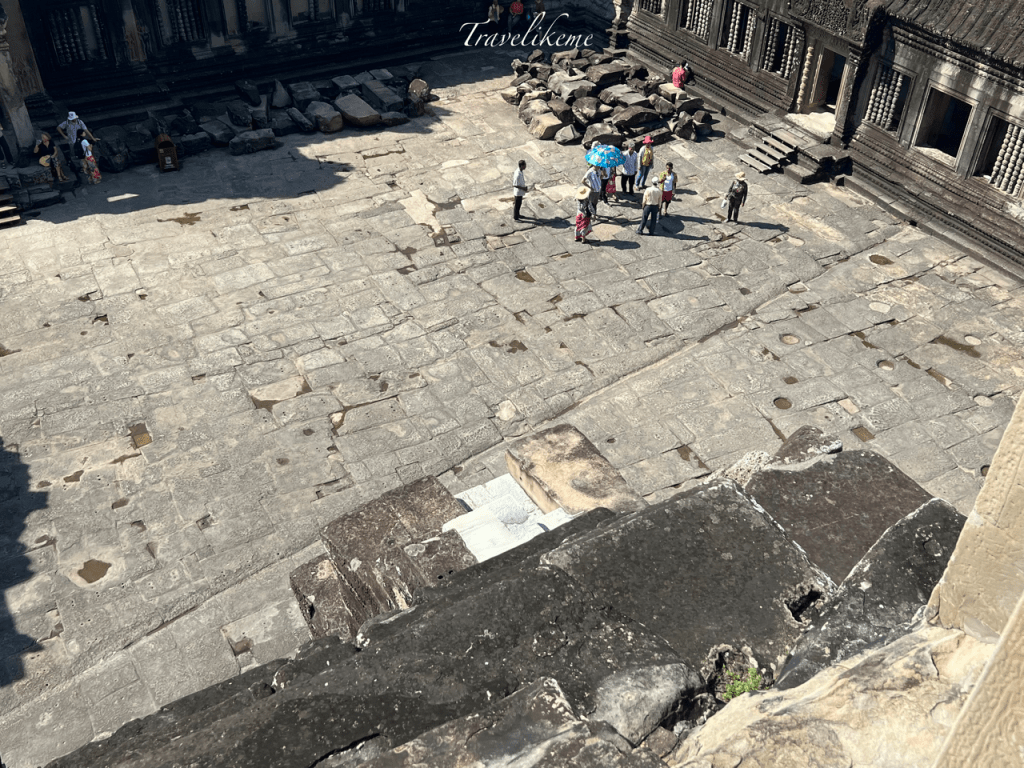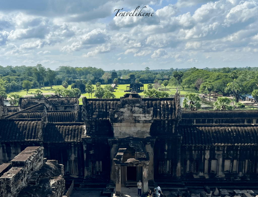 At the highest point of the Angkor Wat temple complex enjoying the panoramic view of the surrounding plains.
