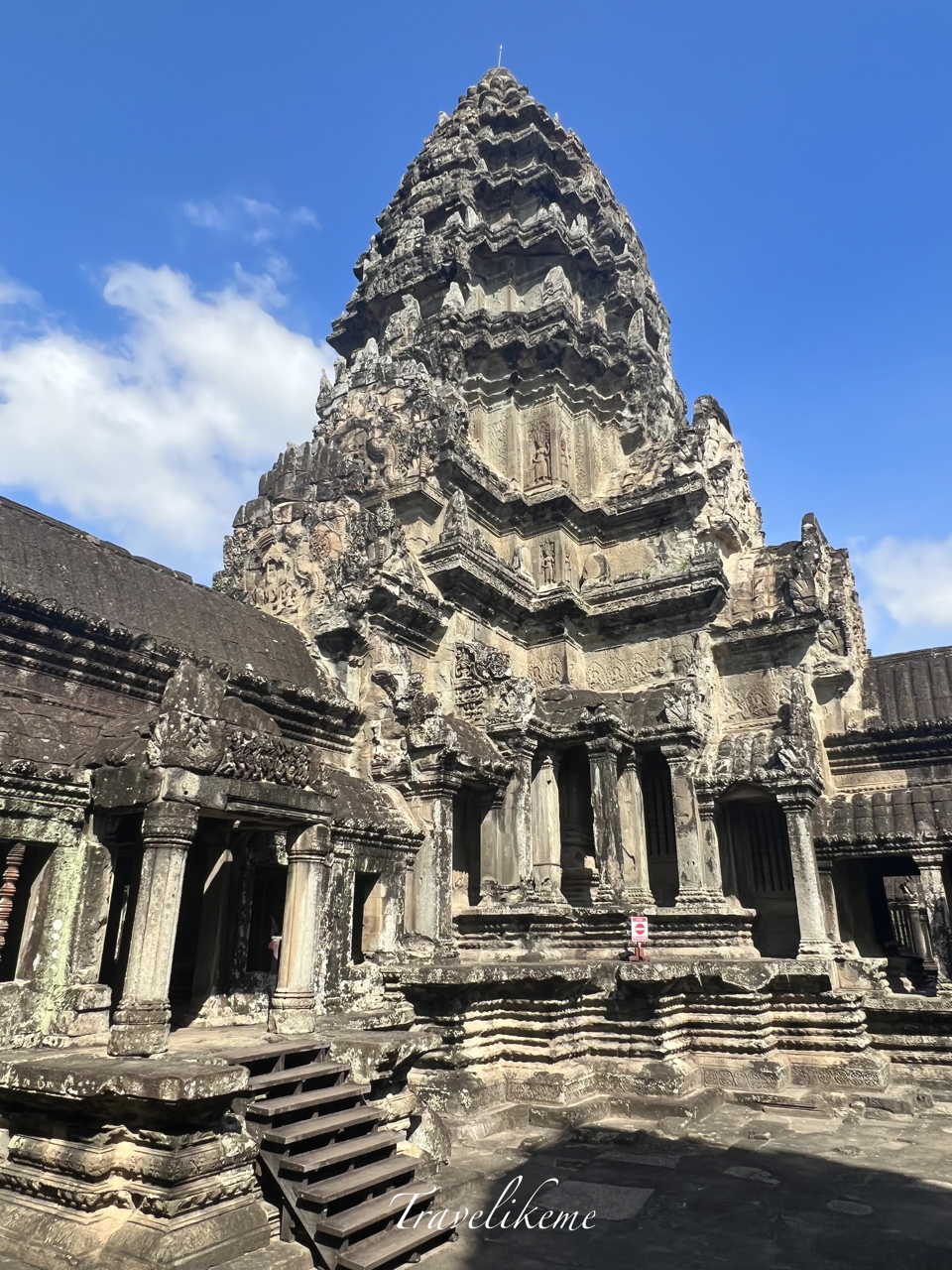 Angkor Wat is the prime example of classical Khmer architecture & by the 12th century, Khmer architects had become skilled & confident in using sandstone instead of bricks or laterite as the main building material.