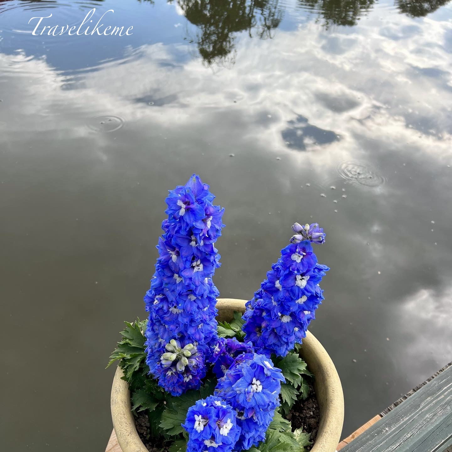 Delphinium in this vivid shade of blue is so eye catching and pretty. They thrive in full sunlight and blossom stunningly between June through July. It can grow up to 6 feet tall and 3 feet wide.