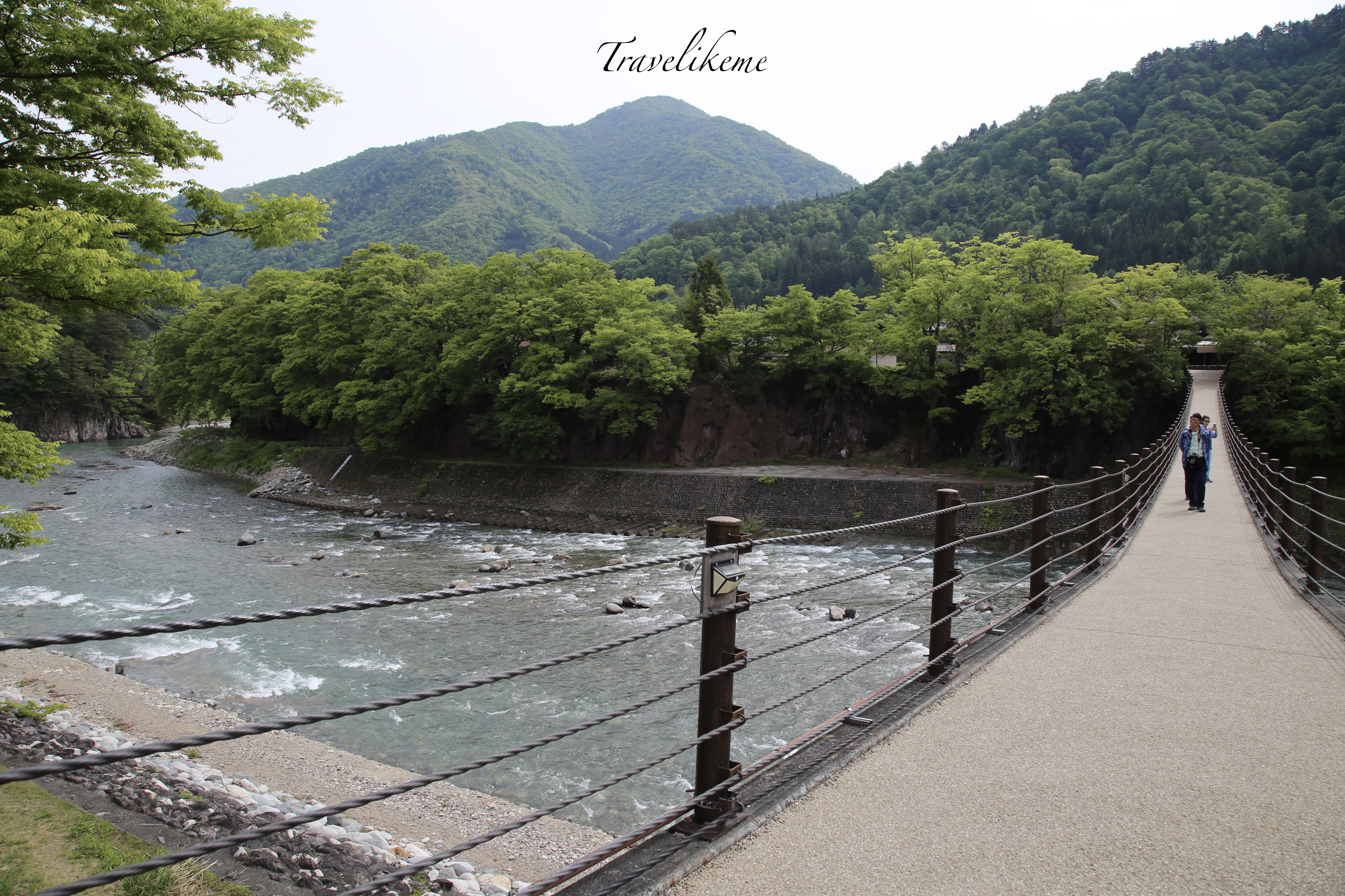 This is the suspension bridge that spans the Shō River that leads to the ‘main entrance’ of Shirakawa-go on the other side. The Seseragi Park carpark near this bridge is fairly large and can accommodate more than 50 cars and a number of tour buses. Located next to the carpark is a Tourist Information centre, a public toilet and also the Shirakawa-go Gassho-zukuri Minkaen (an open air museum).
