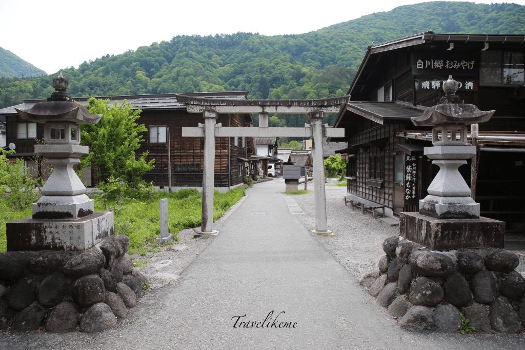Stone Torii gates welcome you into Shirakawa-go with the Hakusan National Park mountain ranges surrounding the tiny village. You will cross over from the secular world to the sacred world of the Shinto religion and this gate acts as a passageway into the shrine’s sacred space.