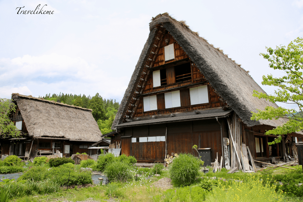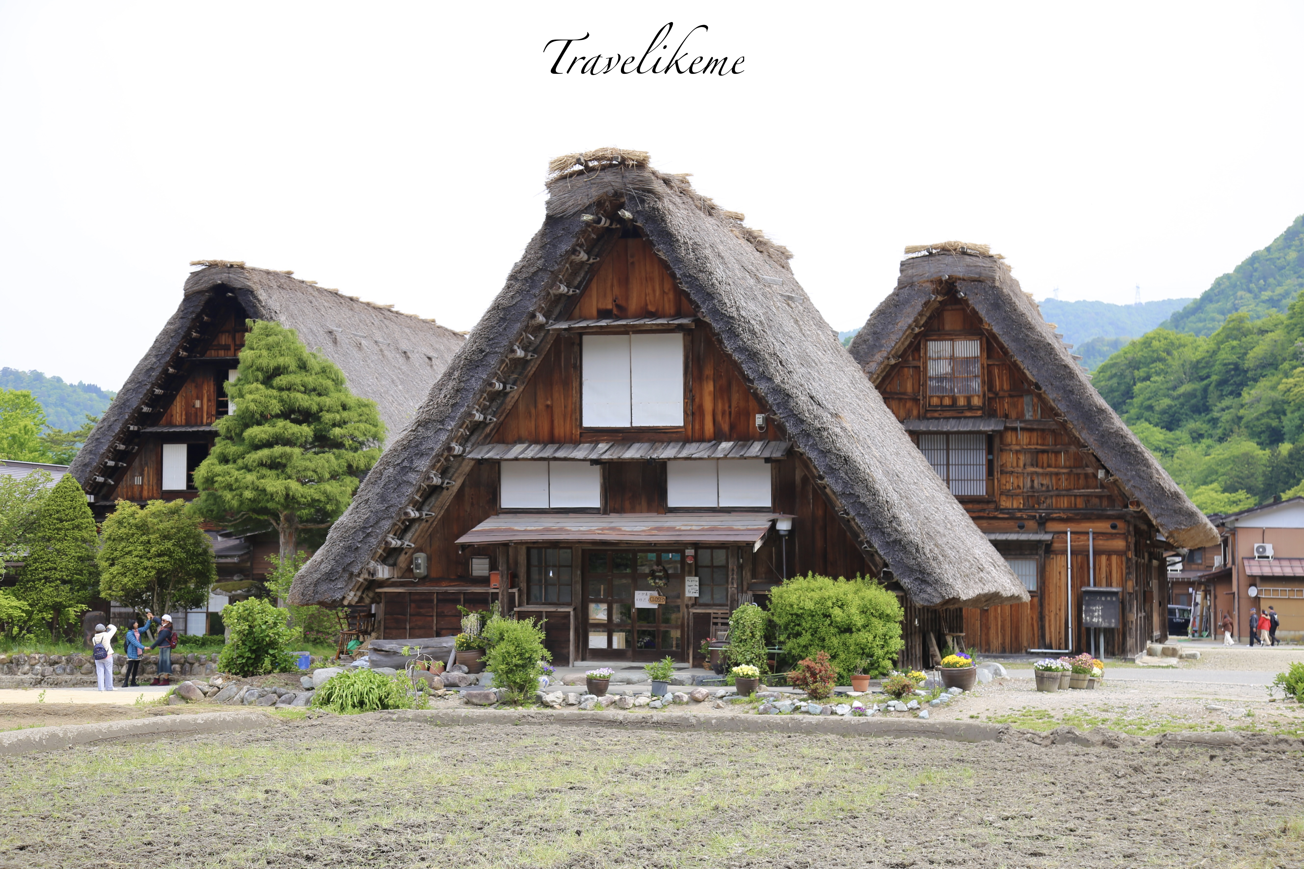 The iconic Shirakawago Three Houses in the middle of the village. Gassho-zukuri is a house built entirely of wooden beams to form a thatched roof that resembles ‘hands in prayer’. The steeply slanting roof of about 60° form almost an equilateral triangle and also looks like a standing open book. It is characteristic of houses in this part of the country as it is made to withstand the heavy snowfall in winter. It is amazing how no nails are used in this construction at all.