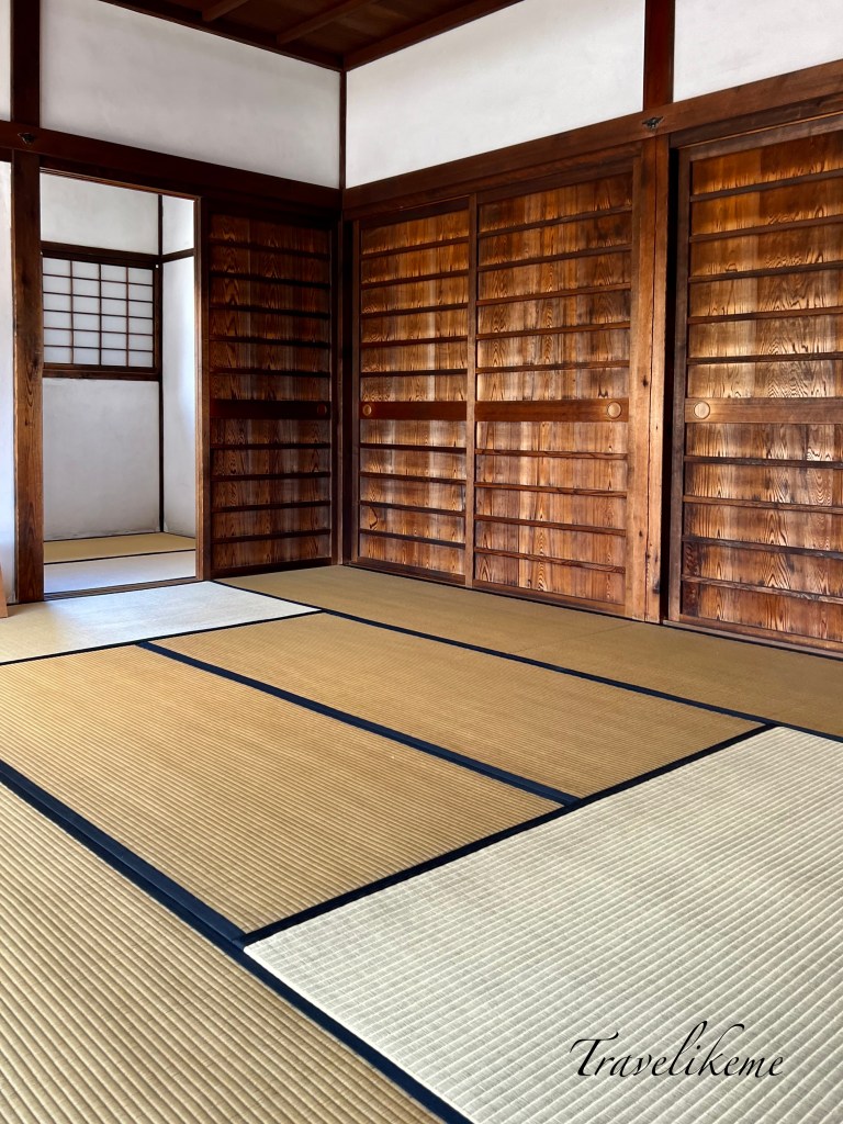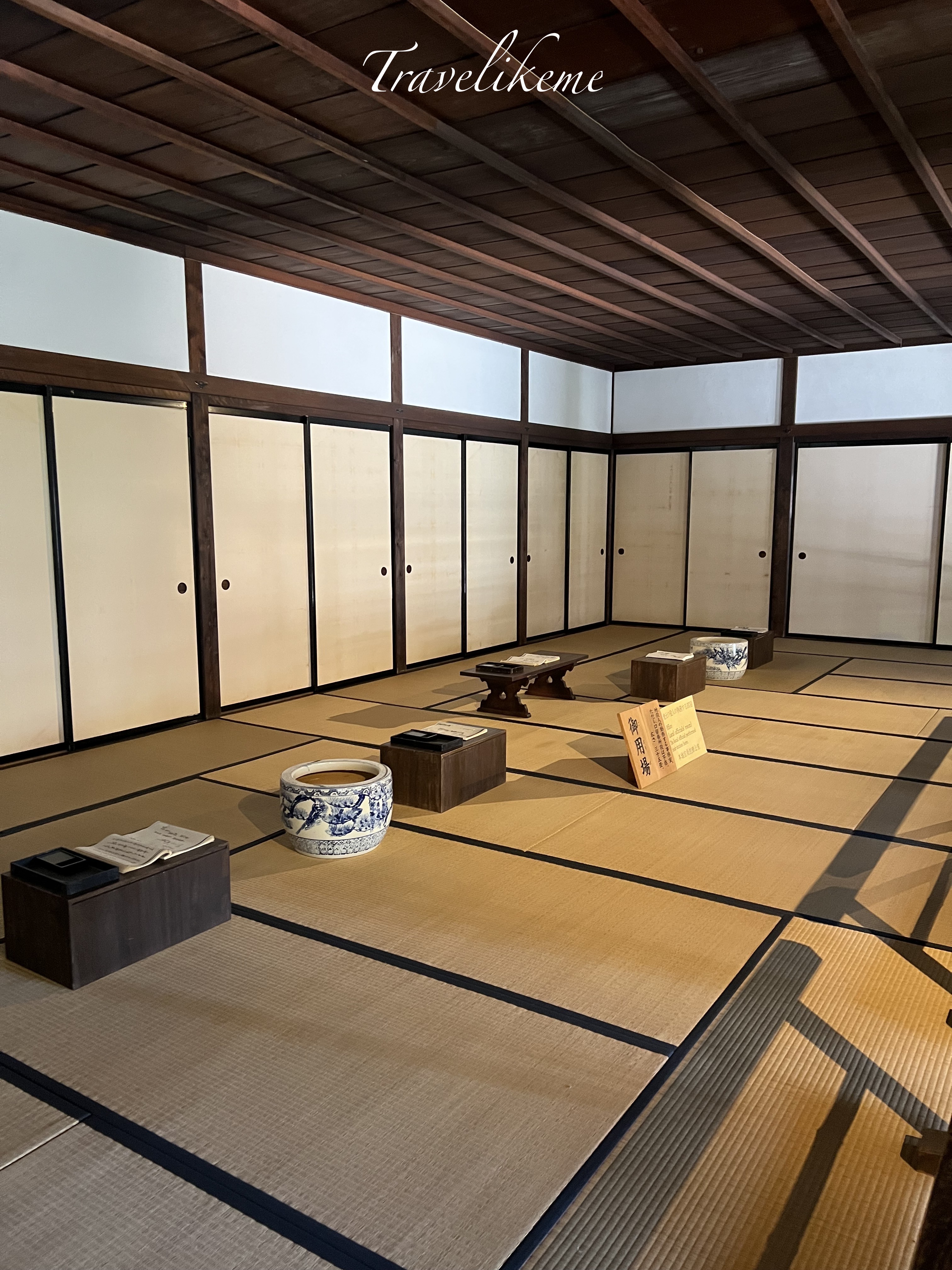 Goyouba 御用場 This is the room where official business is carried out. Notice the different doors used here – these Fusuma 襖 are opaque sliding panels that gives more privacy and serve both as a door and wall.