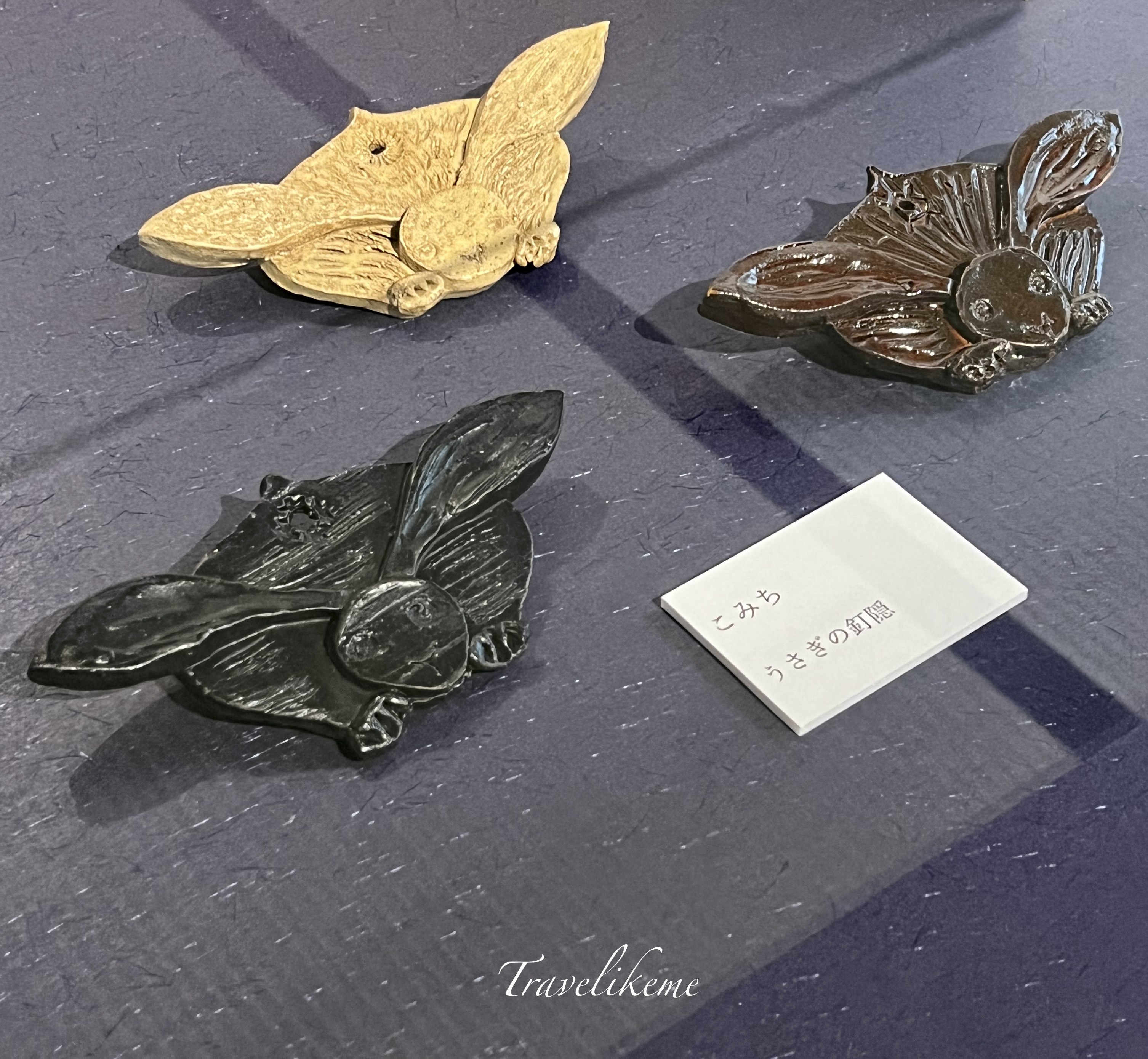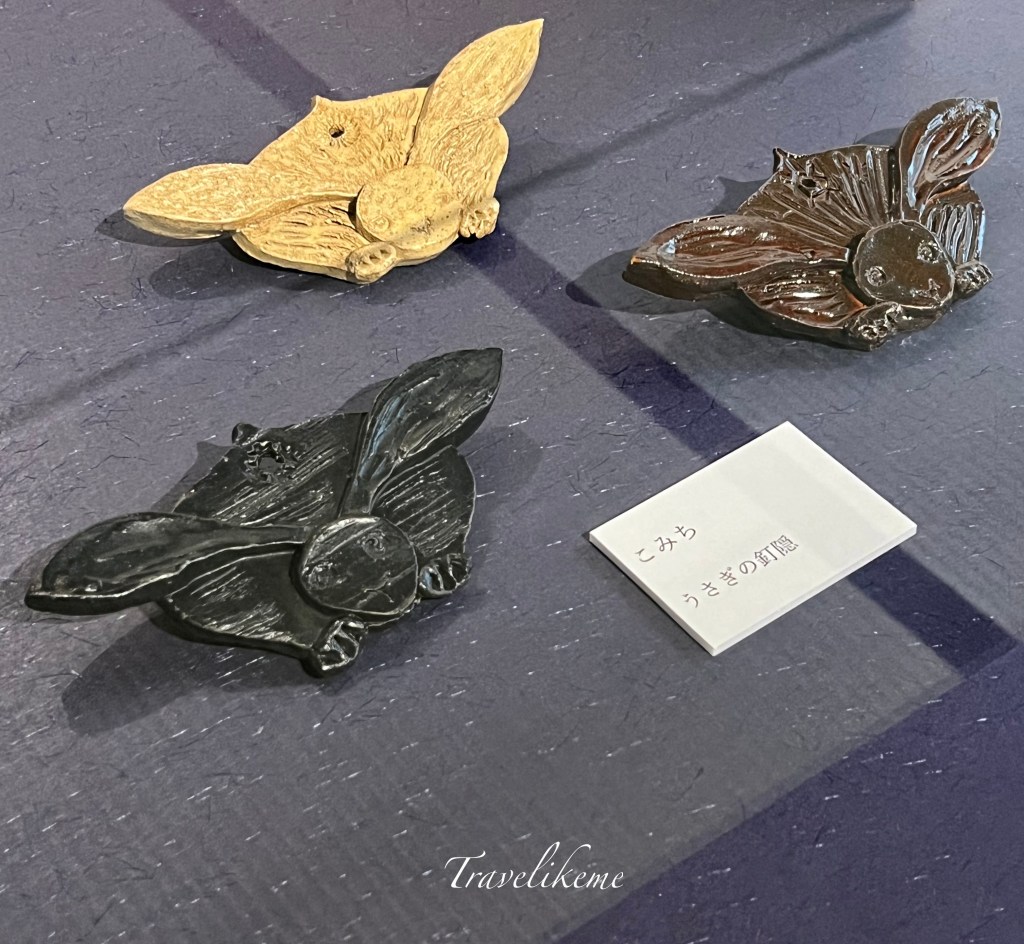 Interesting decorative rabbit-Usagi 兎 motif plaques for nails used in the Jinya complex. In Japanese culture, the rabbit is considered a lucky animal and it symbolises cleverness and devotion. It is also associated with spring signifying birth, growth and renewal.