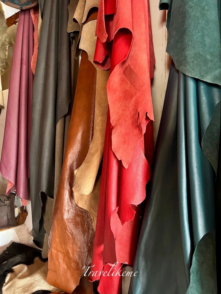 When the hides are ready to absorb the dyes, they are then soaked in the dyeing solutions which uses natural colorants such as poppy for red, indigo for blue and henna for orange.