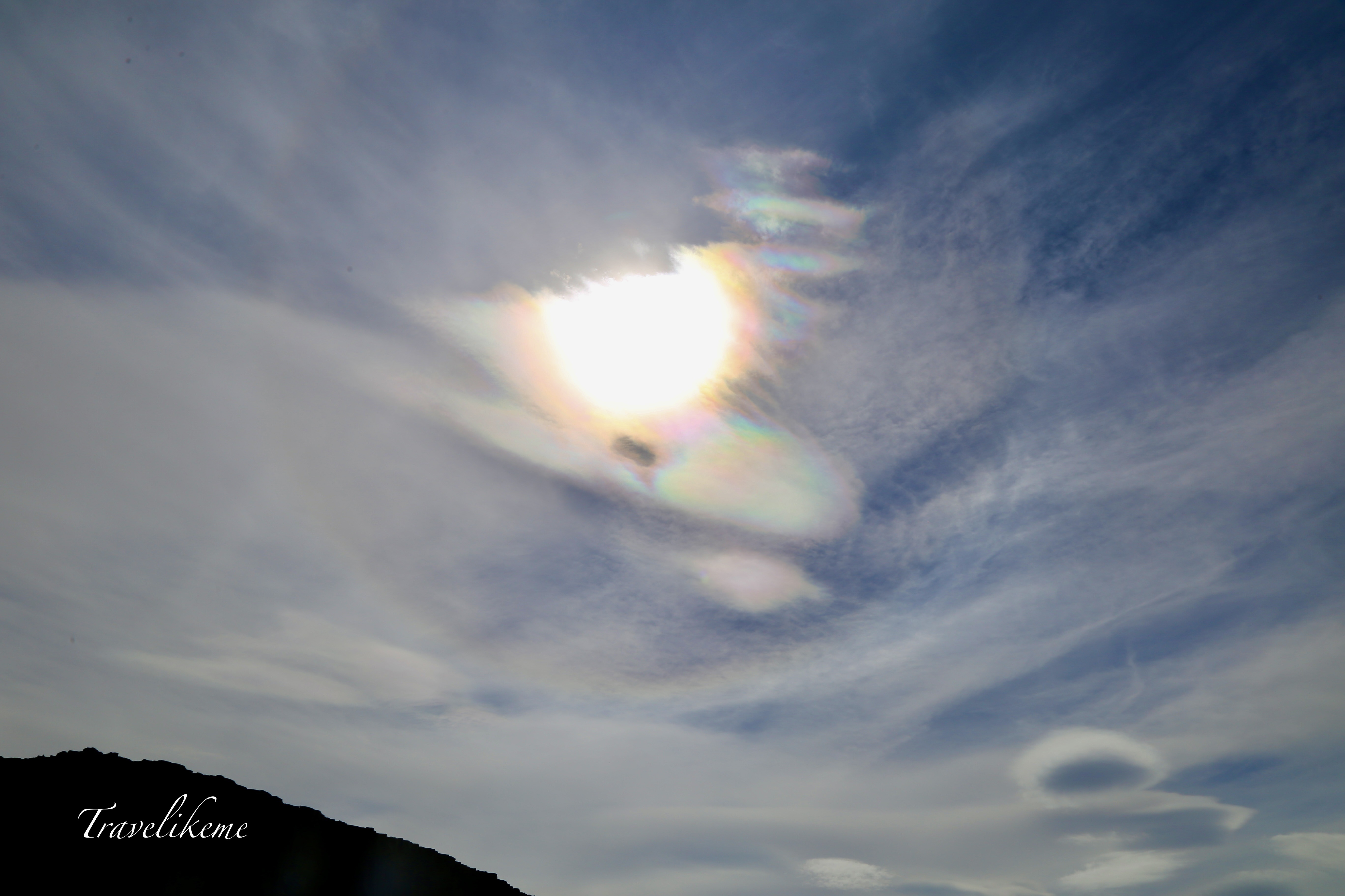 Chanced upon this phenomenon known as Cloud iridescence, a type of Photometeor and it is fascinating to see colours resembling those seen in a soap bubble or oil on a water surface suspended in the sky. It usually appears close to the Sun or Moon.