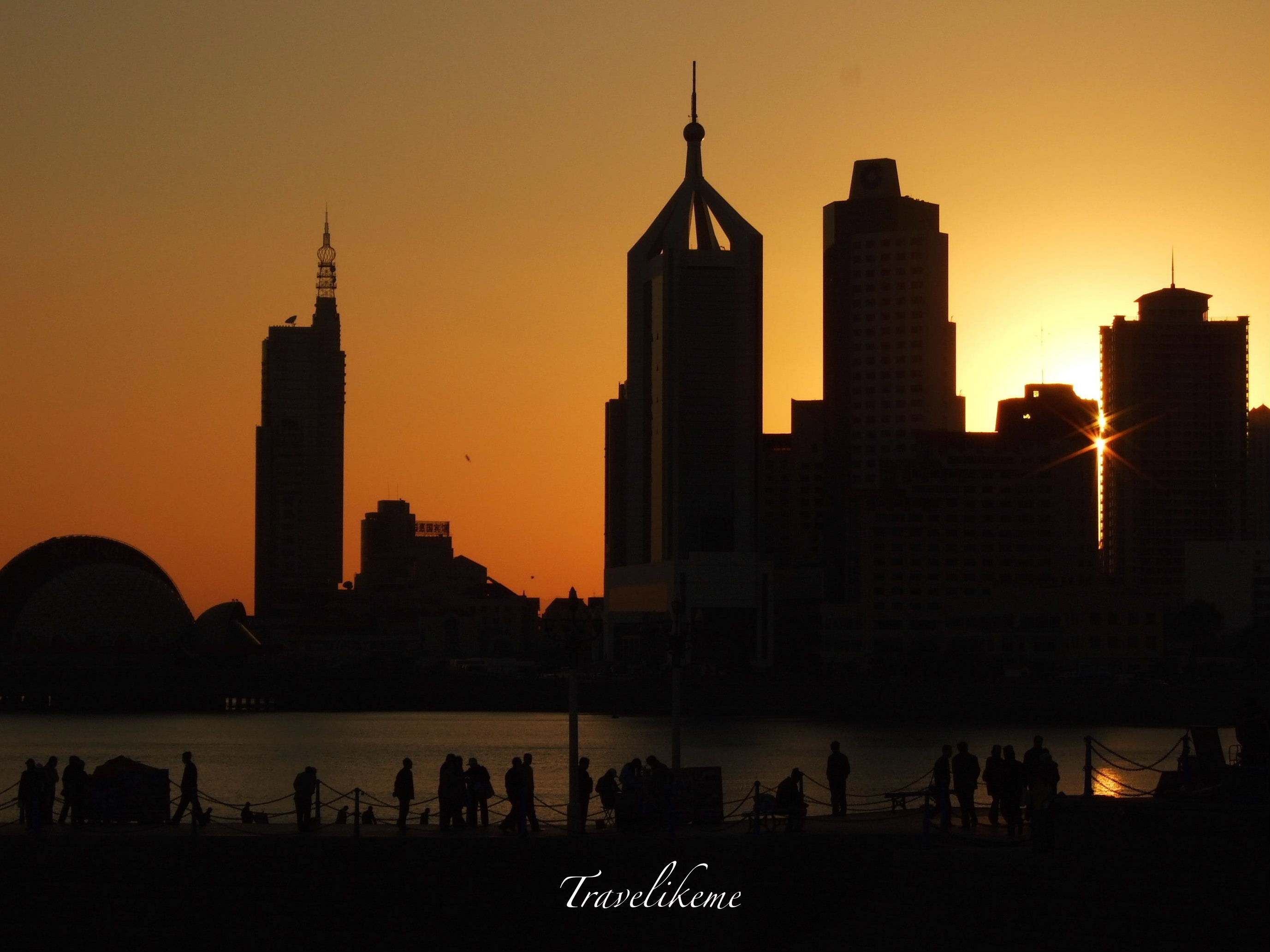 Golden sunset over the city of Qingdao, Shandong Province. Qingdao is a major seaport and naval base, as well as a commercial and financial centre; home of Tsingtao Beer and host for the sailing events during the 2008 Olympics.