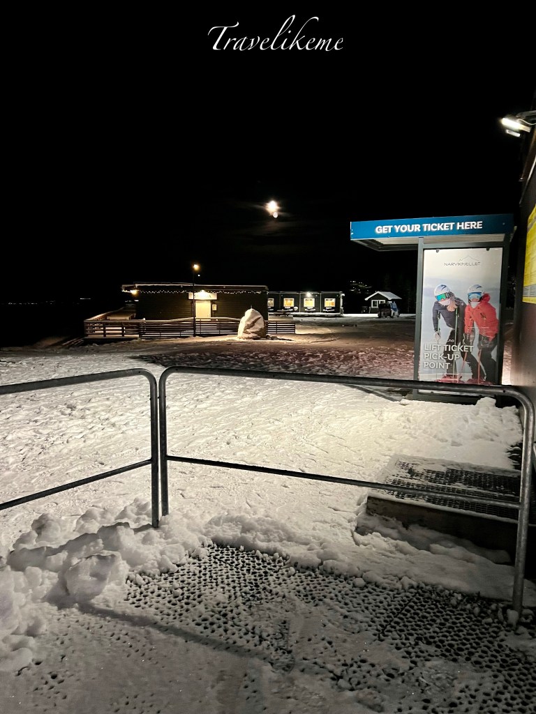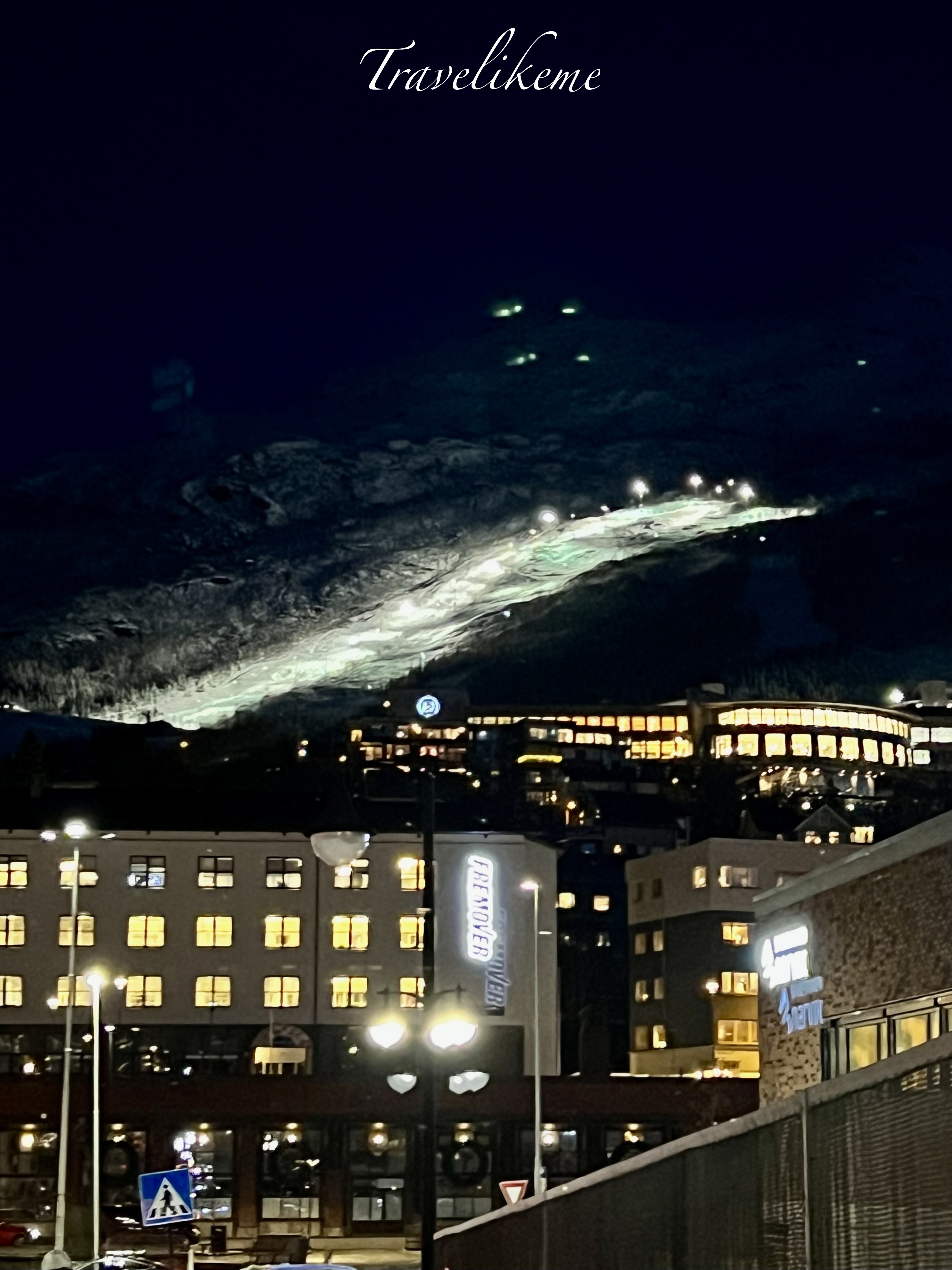 You can see the Narvikfjellet Ski slope is illuminated by floodlights. This is largest and most complete Ski resort in Northern Norway with family friendly ski areas with various levels of difficulty.