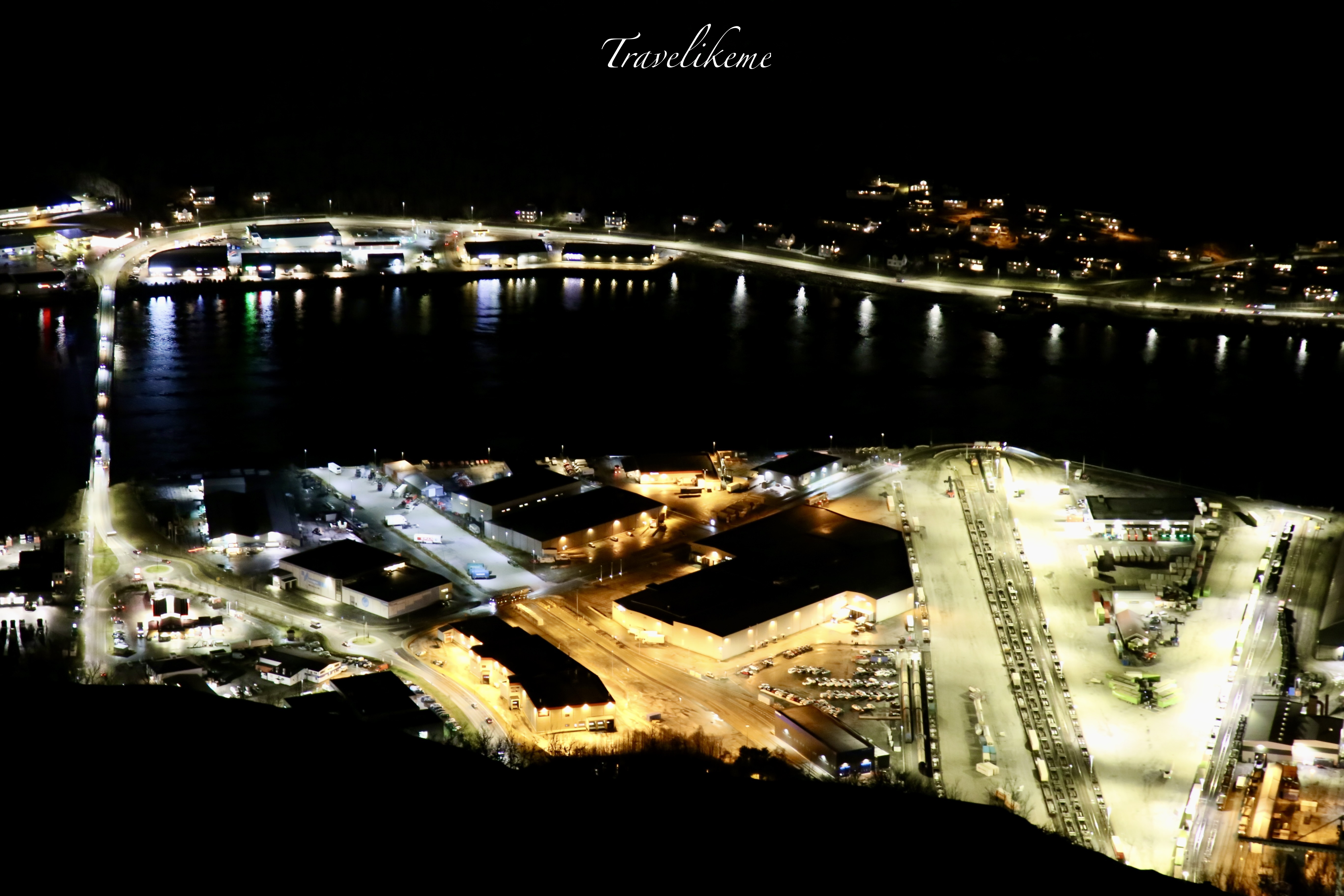 Enjoying this beautiful, illuminated panoramic view of Narvik city, the third largest municipality in Nordland county, Norway on a cold blustery evening.