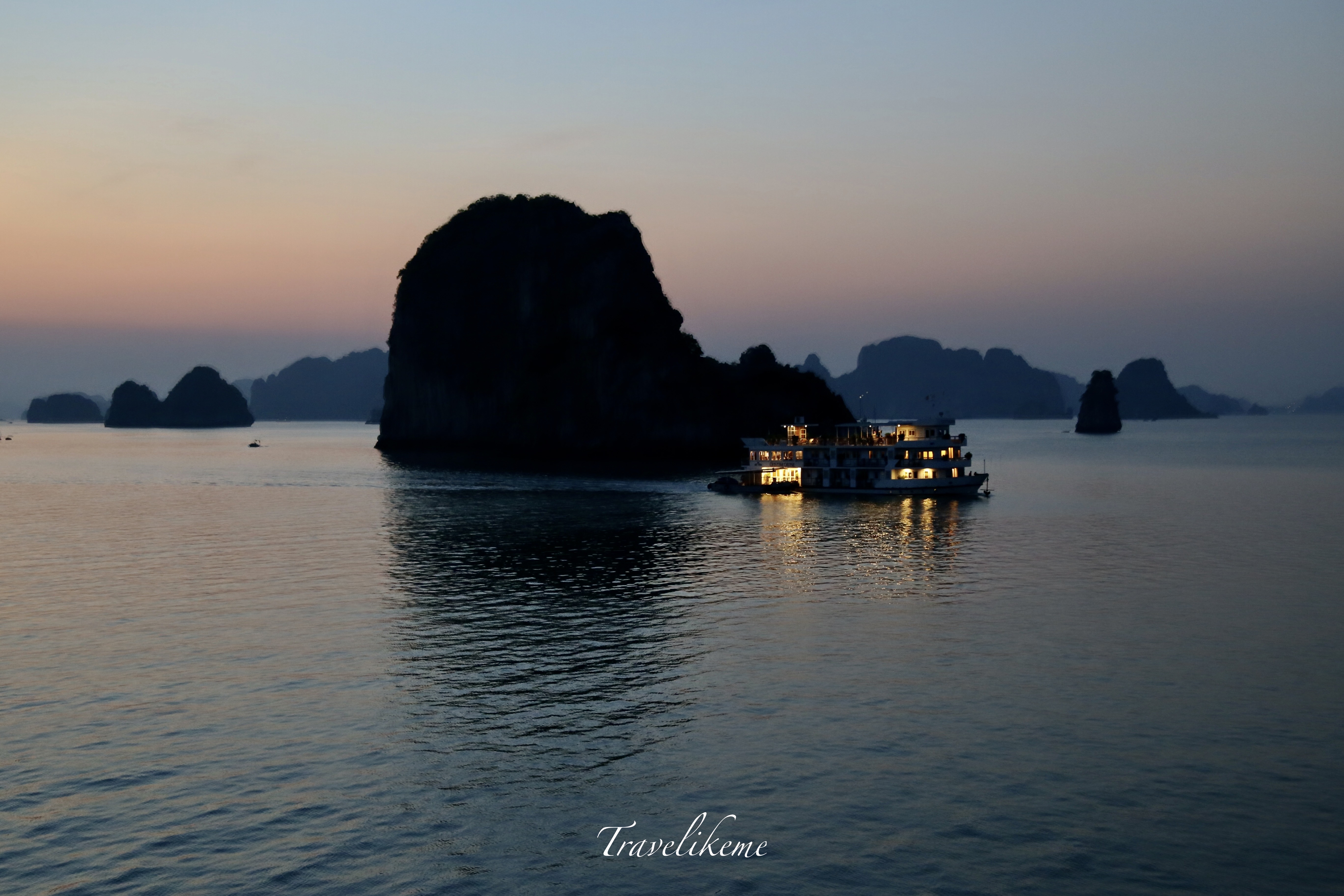 It was such a lovely experience to have a room on board the junk with full glass windows. As we sailed along, the awesome scenery was like a moving gallery from the comfort of my room. After a tiring kayaking experience, we returned by nightfall to have our dinner with the Captain, complete with entertainment by the boat crew. We moored at the Bay amongst the towering limestone islets for the night.