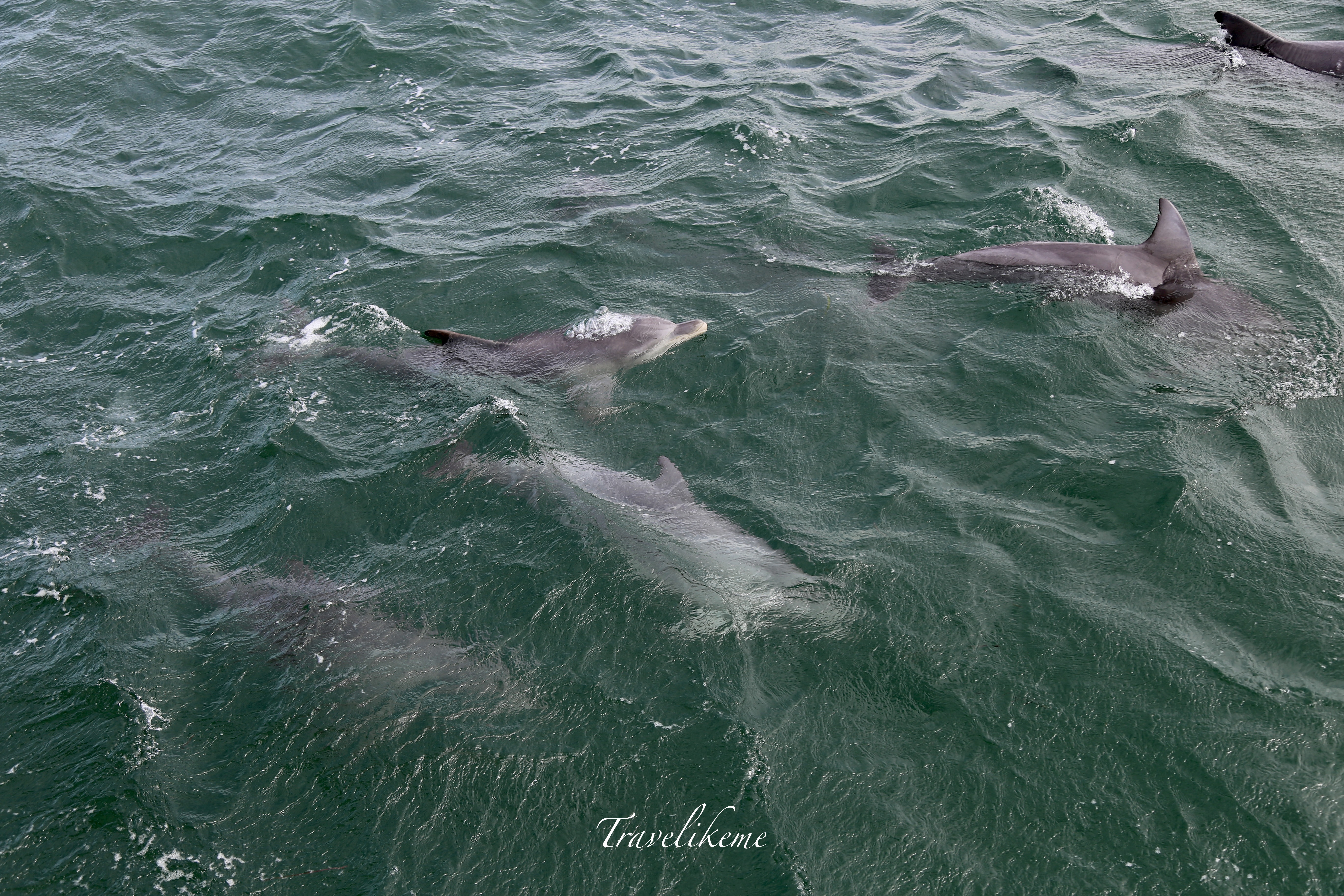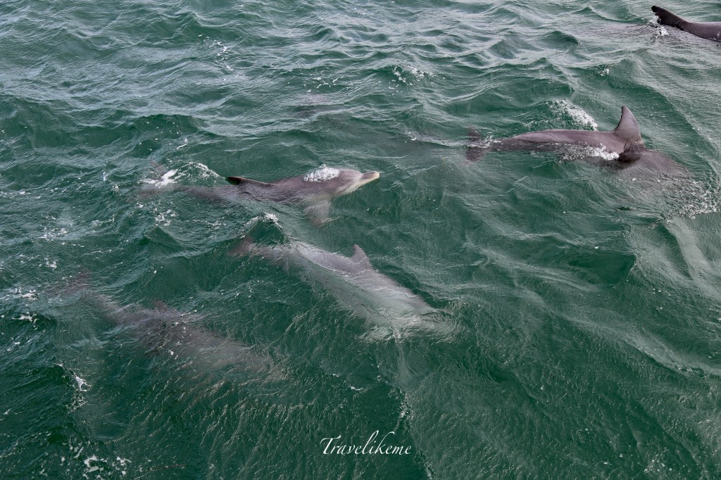 Encounter of the Dolphin kind at Port Stephens, the dolphin capital of Australia. A pod of curious Bottlenose dolphins, playfully encircled our boat much to our delight. These intelligent mammals use sound for both communication and hunting for food and they inhabit warm and temperate seas.