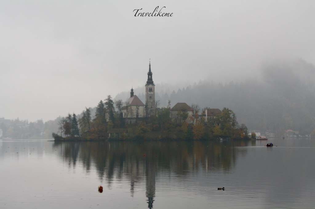 Truth be known I was disappointed at first when we arrived at Lake Bled in the Julian Alps of Upper Caniolan of Northwestern Slovenia. It had been raining and the sky was as you see here blanketed by mist. I was hoping to capture a sunny photo of Bled Island but it was what it was. The misty effect created a picture of ethereal tranquility which pleasantly surprised me of which I only realised when I was going through my photos after the trip.