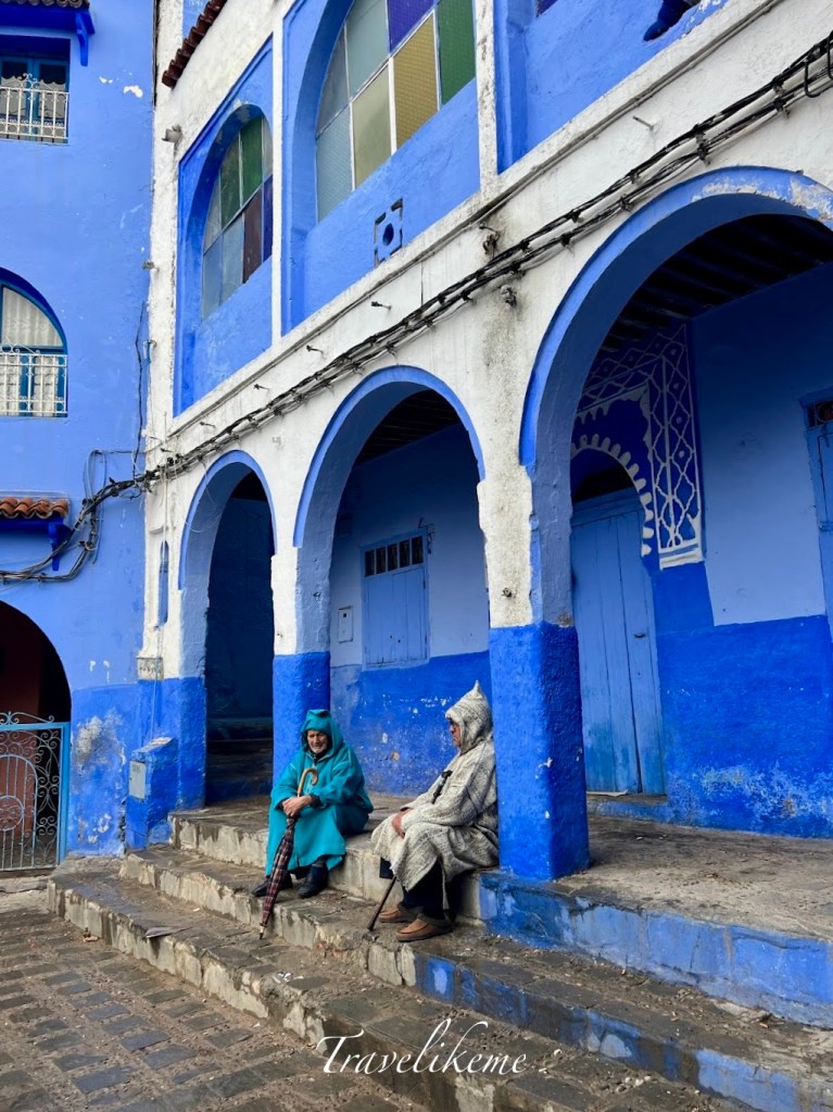 Entering the Medina of Chefchaouen (Blue City) located 600m above sea level in the foothills of the western part of the Rif mountain range in Northwestern Morocco. It was founded in 1471 by the Moulay Ali Ben Rachid, a distant descendant of the Islamic Prophet Muhammad. I witnessed these two elderly gentlemen just chilling, sitting on the porch, comfortable in silence and watching the world go by. A flurry of activity was going on as tourists and locals get into the Medina through Bab Souk (Market Gate) as the morning unfolds.